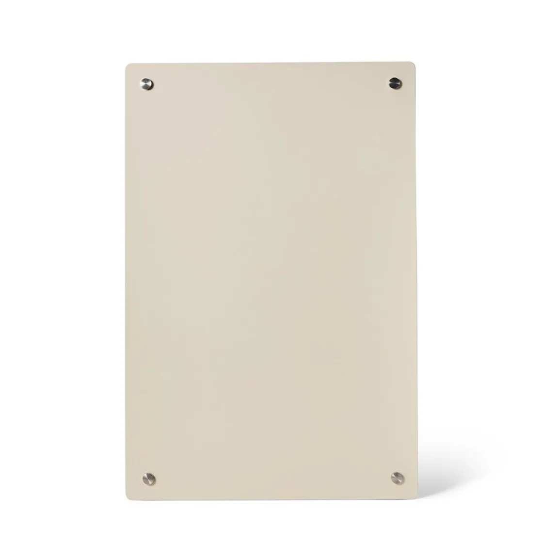 Magnetisk anslagstavla i 100% järn med beige pulverlackering. En stilren lösning för att samla påminnelser, anteckningar och bilder på ett och samma ställe. Kan monteras både vågrätt och lodrätt och passar lika bra i kök, hall eller arbetsrum. Ytan fungerar även med vita wet wipe-pennor och kan enkelt torkas av med en våt trasa. Monteras smidigt på väggen, skruvar ingår. Max viktkapacitet 1 kg. Dess beige pulverlackering ger en modern och diskret design som passar in i alla typer av inredningar.