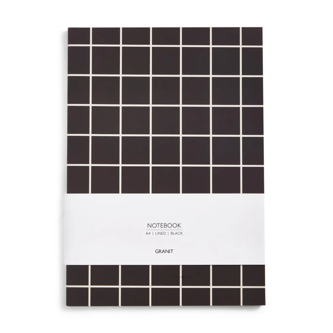 GRANIT Anteckningsbok A4 Rut Svart Linjerad- Kalendrar & Skrivblock