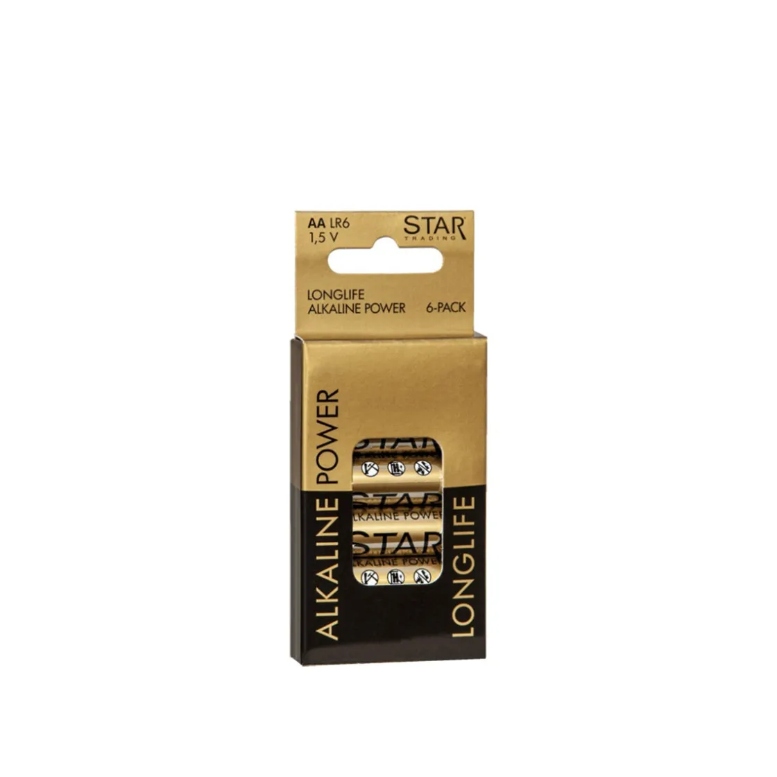 6-pack med AA-batterier. Starkt batteri för till exempel lampor och leksaker.