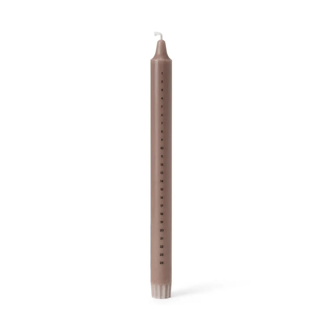 Räkna ner till Julafton med våra finfina bruna datumljus av stearin. Adventsljus som hjälper dig hålla reda på både hur många dagar det är kvar till julafton och vilket datum det är. På datumljuset är det tryckt siffrorna 1-24 med svarta siffror.