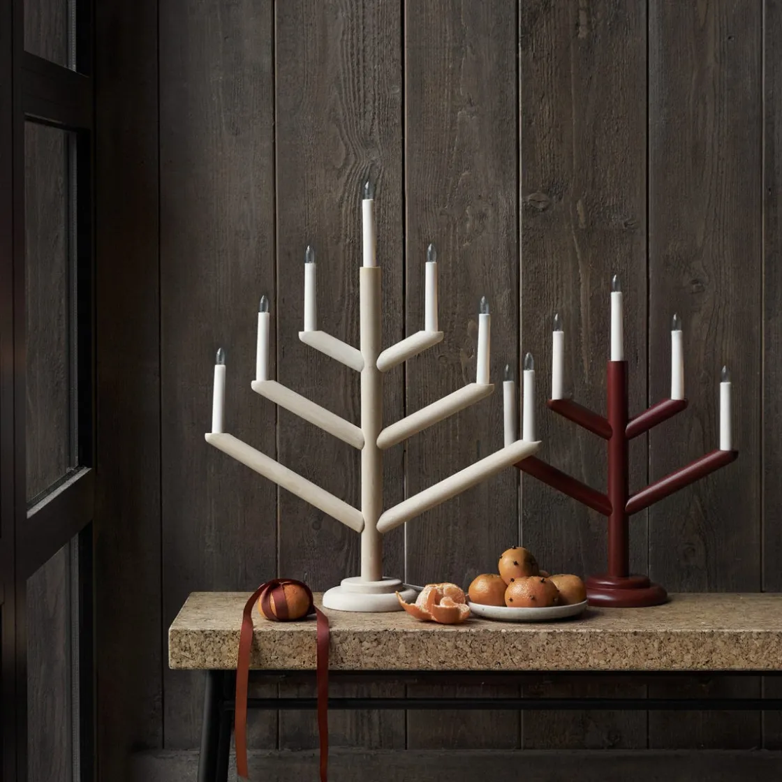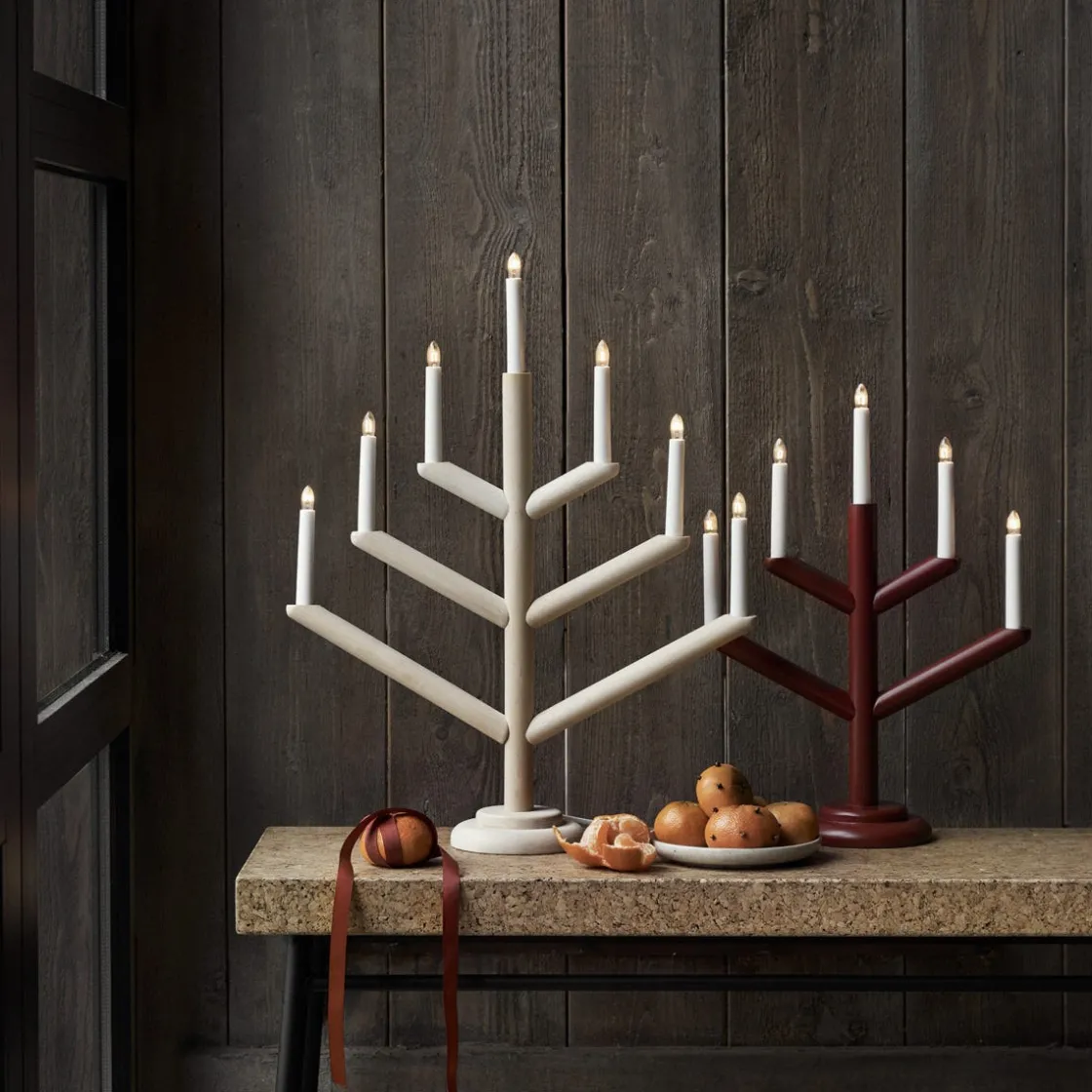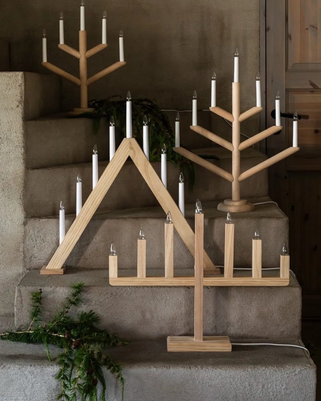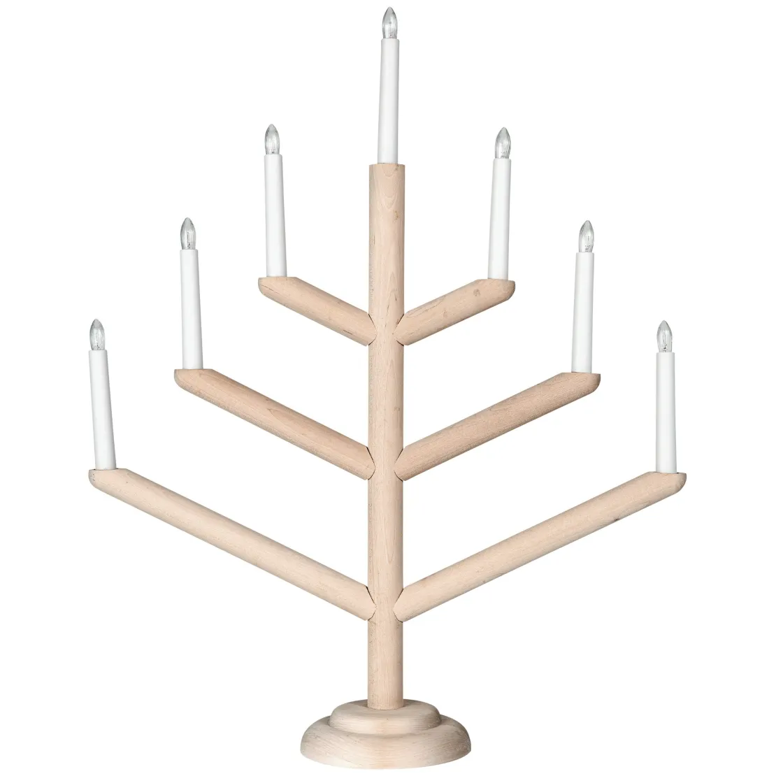 Stilren elljusstake i obehandlad björk som ger ett naturligt och Skandinaviskt intryck var den än ställs. Lamporna ger ett mjukt och varmt sken i ditt fönster eller på julbordet. Anslutningskabel med strömbrytare.