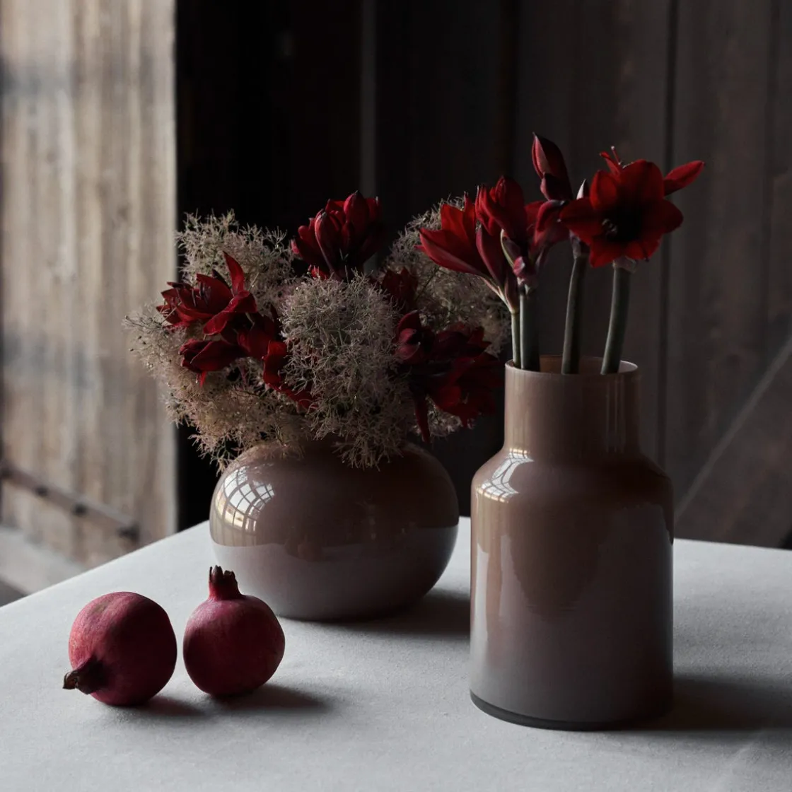 Glasvas Rund Beige är en fin inredningsdetalj som tillför stil till ditt hem med sin tidlösa design som passar både modern och klassisk inredning. Tack vare dess runda form är den idealisk för att arrangera blommor på ett smakfullt sätt, vilket gör den perfekt som dekoration på matbordet eller i vardagsrummet. Den beige färgen gör att vasen enkelt kan matchas med andra färger och texturer i rummet, vilket ger en varm och inbjudande känsla.