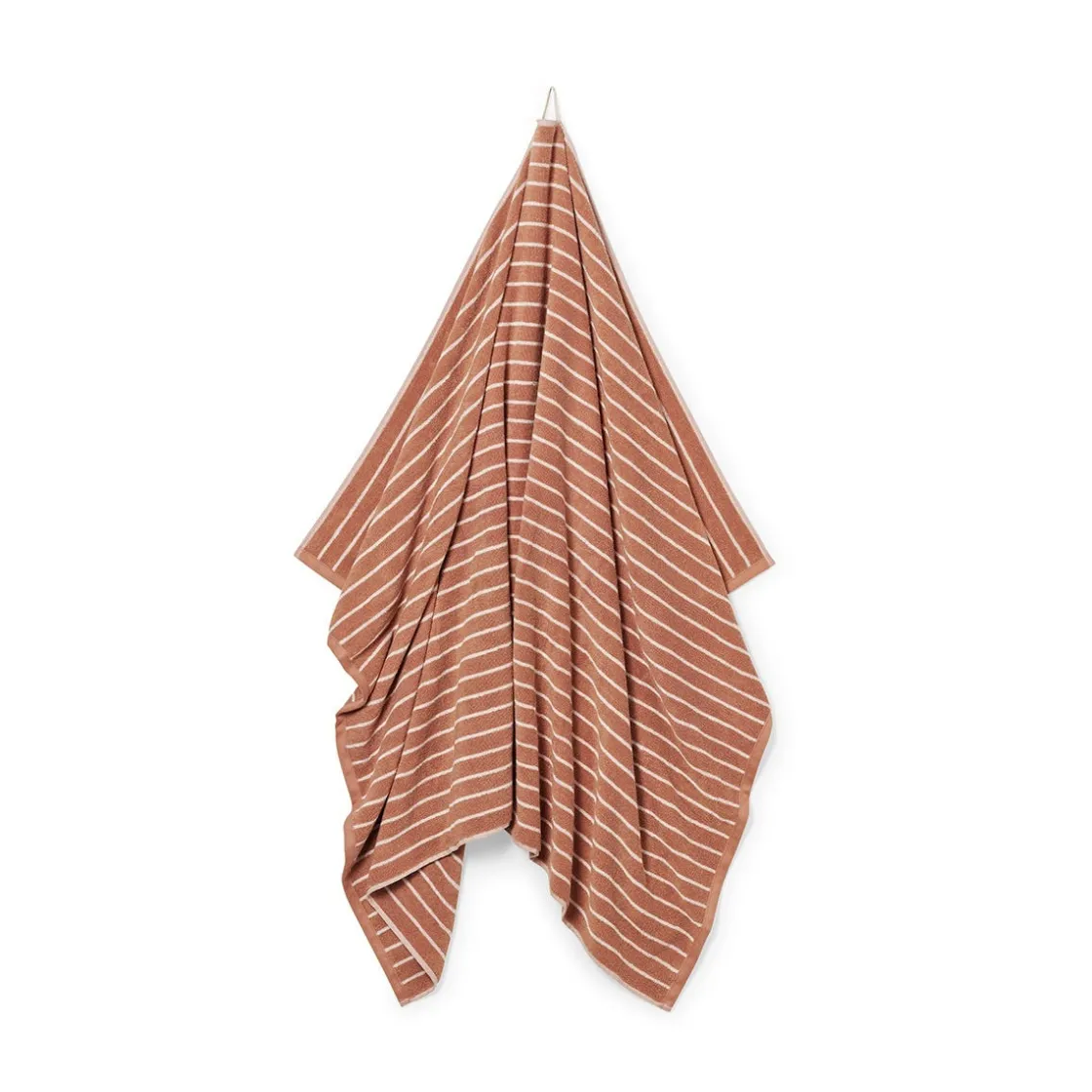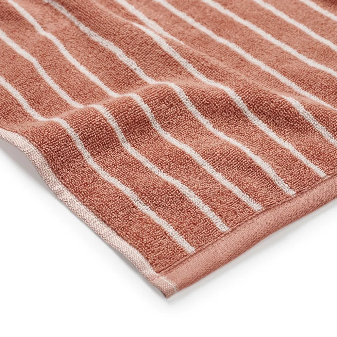Randig handduk i mjuk bomullsfrotté som är skön mot huden och har god absorptionsförmåga. En fin duschhandduk i en varm, jordnära färg som påminner om terrakotta och på ett enkelt sätt tillför ett stilrent uttryck till ditt badrum.