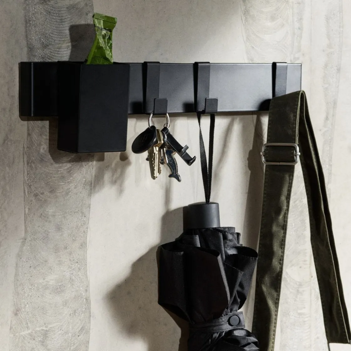 Hängkorg i svart metall att häng upp på vår vägglist (402993). Praktisk förvaring för både hemmakontoret, hallen och köket. Förvara småsaker du inte vill tappa bort på ett och samma ställe. Lådan hakas enkelt på listen (som köps separat) och kan därför också utan problem flyttas runt utan problem.