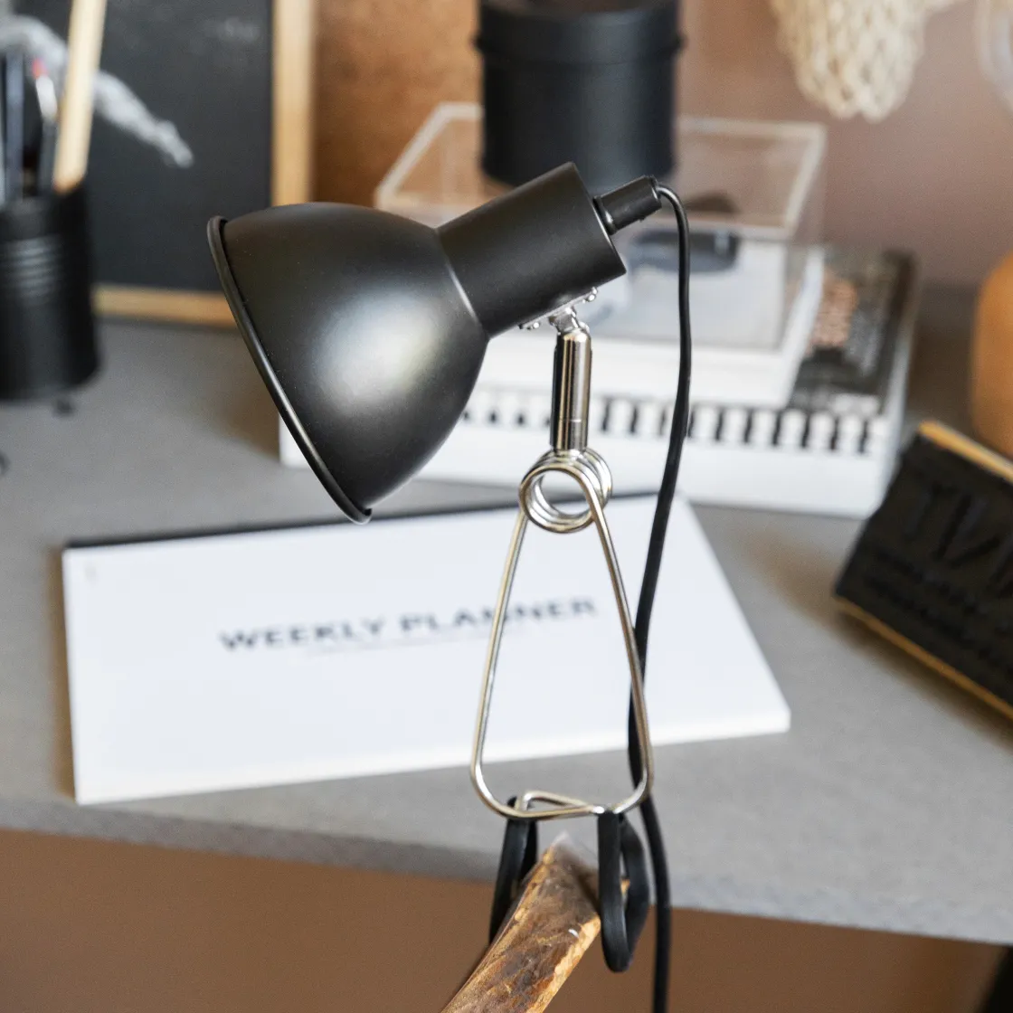 Denna praktiska klämspot har en industriell känsla med skärm i metall och en kraftig klämma som fäster för flera olika placeringar. Anslutningssladden är 1,8 meter lång och har strömbrytare.