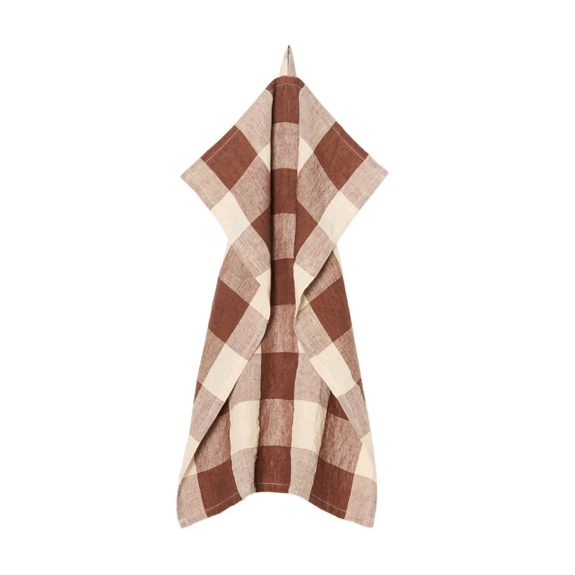 Med denna kökshandduk av 100% linne får du på ett snyggt och enkelt sätt in färg och mönster i ditt kök. Den tidlösa ginghamrutan känns både klassisk och modern, inte minst i denna färgkombination av offwhite och varma bruna toner.