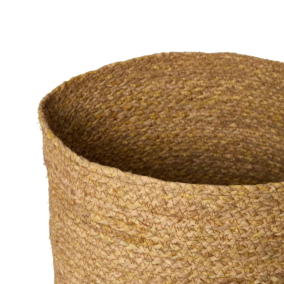 Handgjord större korg av risstrå tillverkad av 100% naturligt material, fri från skadliga kemikalier och syntetiska färgämnen. En praktisk och snygg förvaringskorg som rymmer 26L med en maximal viktkapacitet på 5 kg. Ett mångsidigt tillskott till ditt hem som lämpar sig för allt från förvaring till dekoration.