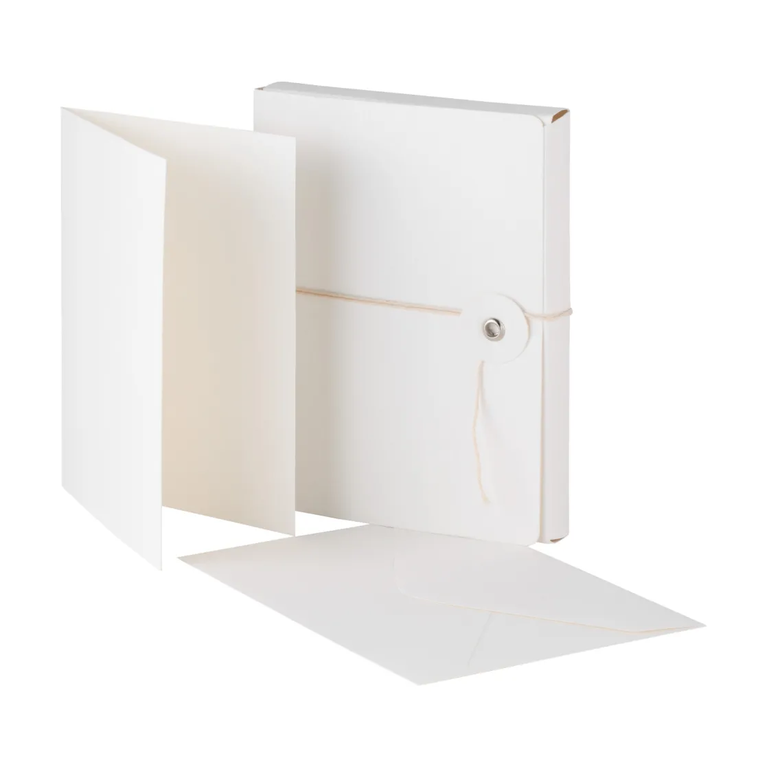 Schysst set med kort och kuvert i fin och praktiskt förpackning med snörlås som håller ihop det hela. Gör dina egna inbjudningar och födelsedagskort. 10 kort och 10 kuvert.
