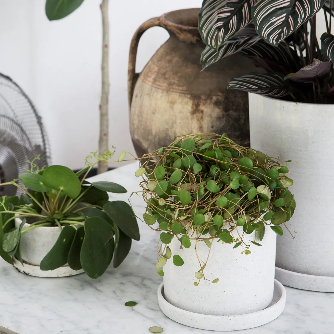 | Skötselråd | Då polystone är ett porösare kompositmaterial ska krukan aldrig ställas på ömtåliga underlag, krukan kan då ge ifrån sig fukt när man vattnar jorden. |