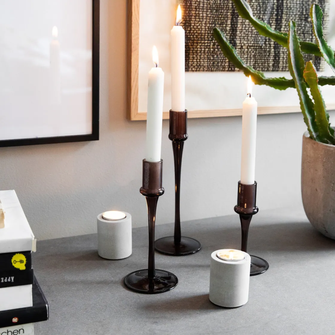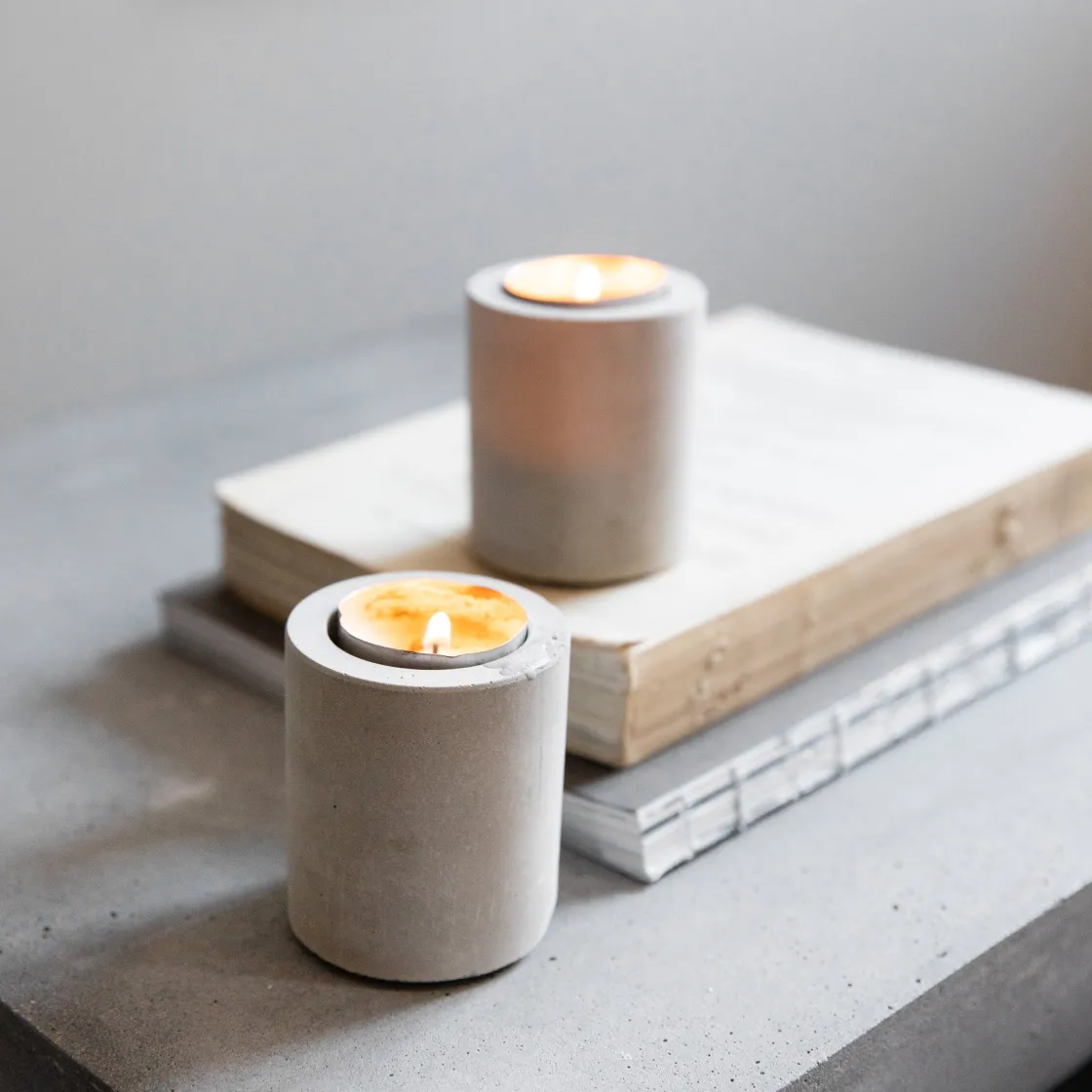 Stilren ljushållare i betong för både värmeljus och kronljus som passar fint i alla hem.