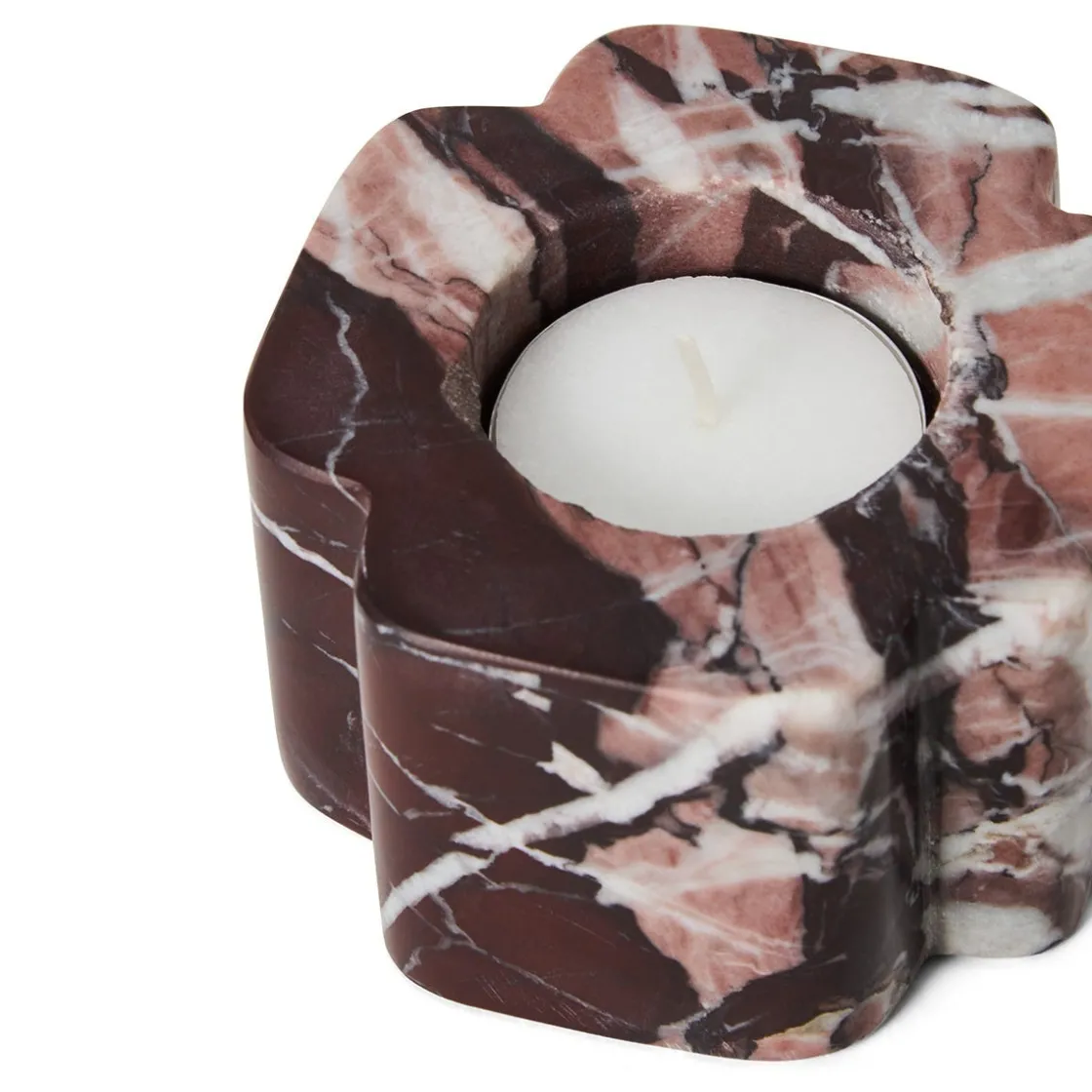 Ljuslykta för värmeljus tillverkad av 100% röd flamingo-marmor, ett naturligt material som gör varje ljushållare unik i både färg och mönster. Den varma tonen och den lena ytan gör den till ett dekorativt inslag på bordet, i fönstret eller i en samlad grupp. Ljushållaren är handgjord och är anpassad för värmeljus. Marmor är ett slitstarkt naturmaterial som håller över tid både i funktion och uttryck.