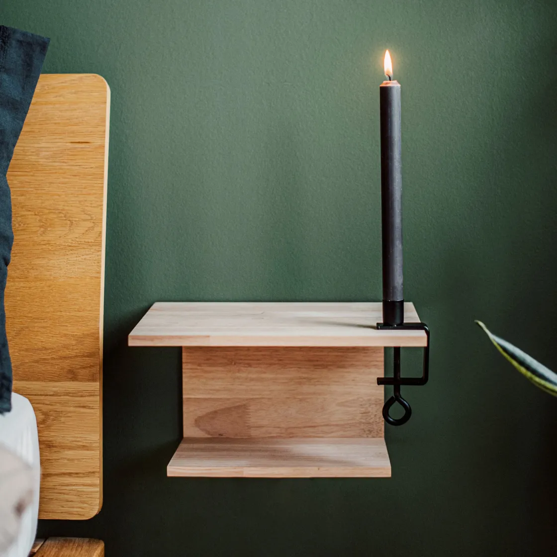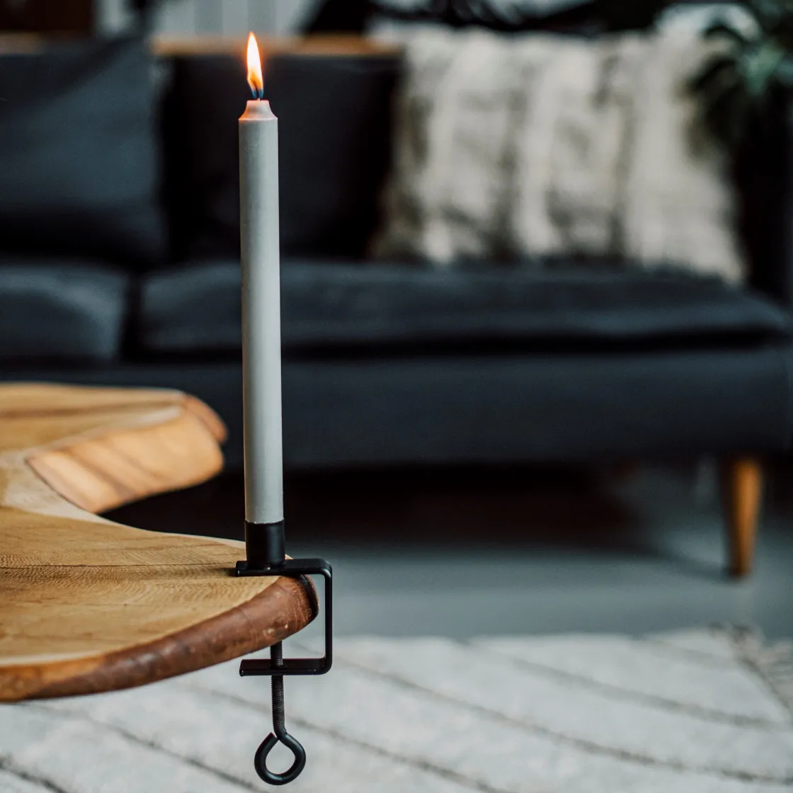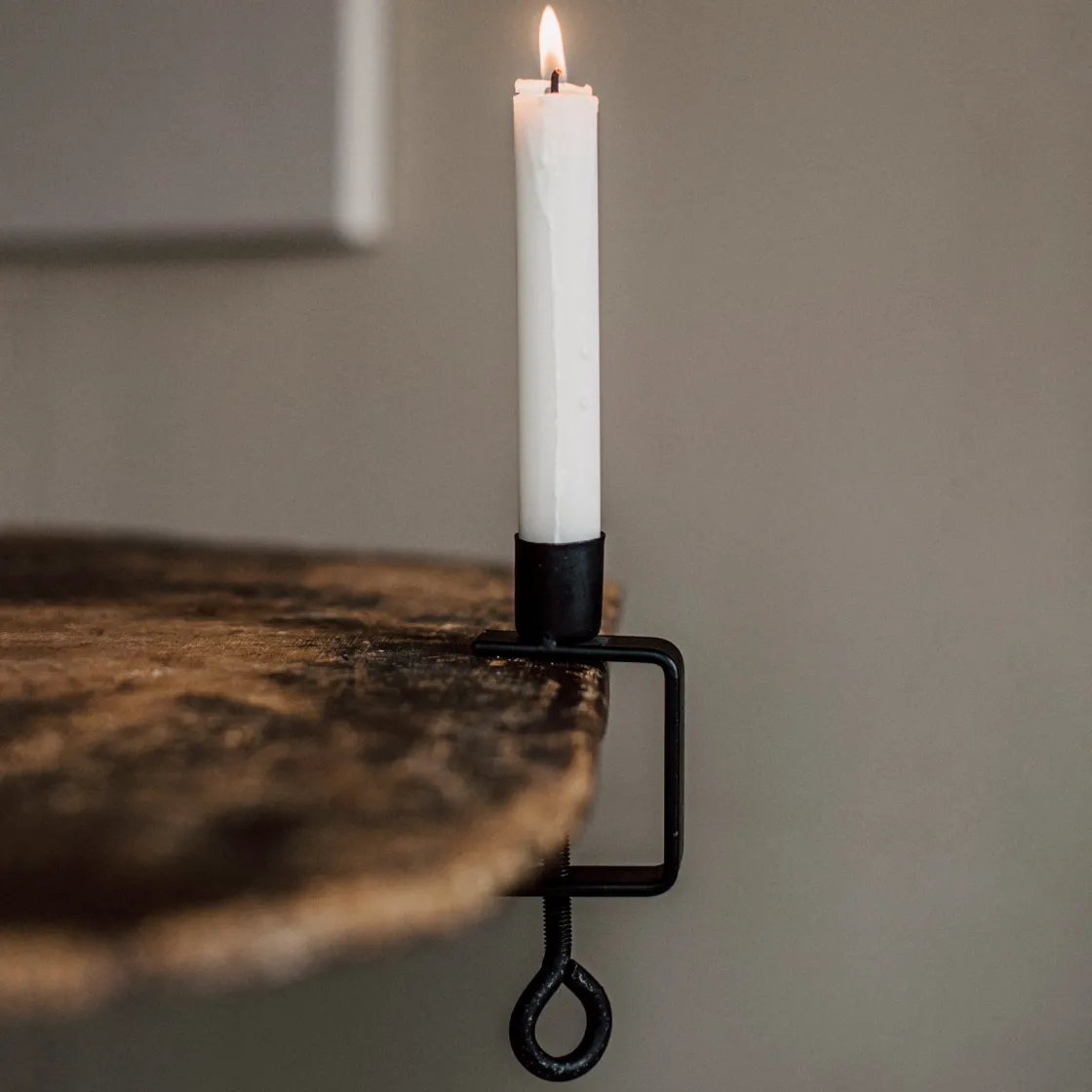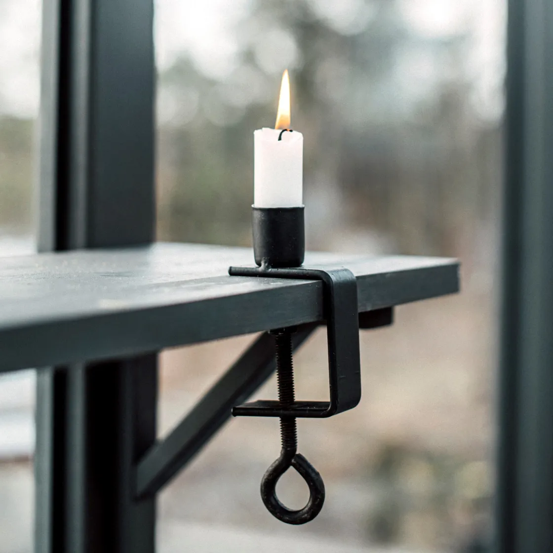 Ljusstake i svart järn som skruvas fast i underlaget. Ljushållaren är dimensionerad för kronljus. Ljusstaken kan skruvas fast på underlag som är upp till 5 cm tjocka. För att kunna skruva fast ljusstaken måste du kunna föra in hållaren på underlaget minst 3,5 cm för att skruven ska fästa. Du kan föra in den maximalt 5 cm in på underlaget.