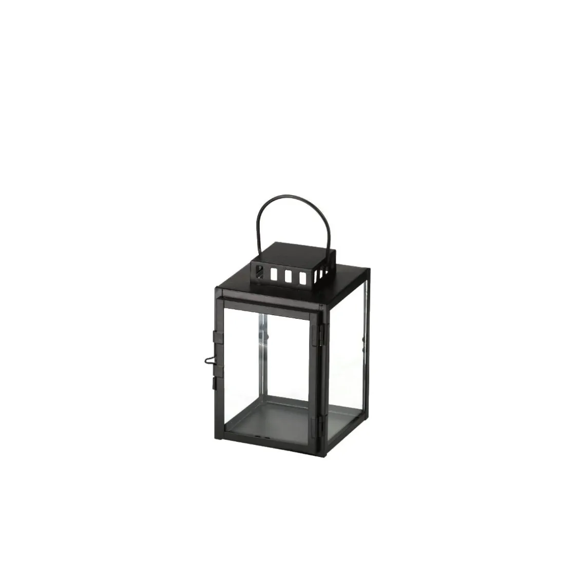 Svart lykta i metall med glasdörr som går att öppna och stängs med hjälp av en liten hake. Finns i tre olika storlekar som både är fina i grupp och var och en för sig. En lykta som är en snygg detalj året om. Uppskattad present i kombination men blockljus i 100% stearin.