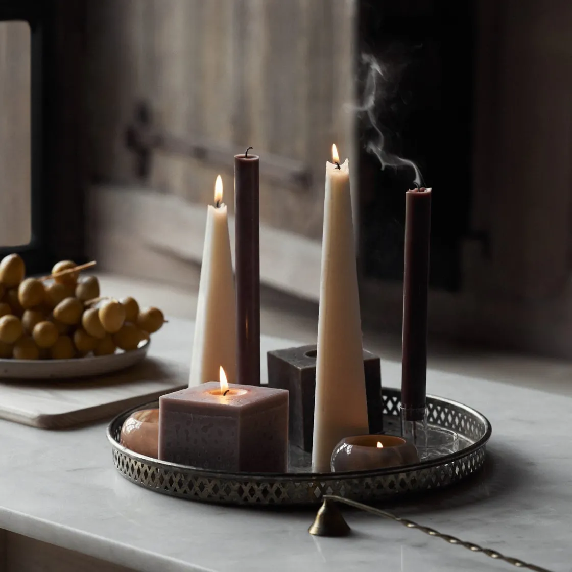 Stearinljus i en dekorativ pyramid-form. Ljuset finns i två storlekar och passar fint på en stor rund ljusbricka. Passar fint tillsammans med ljus i flera färger och former.