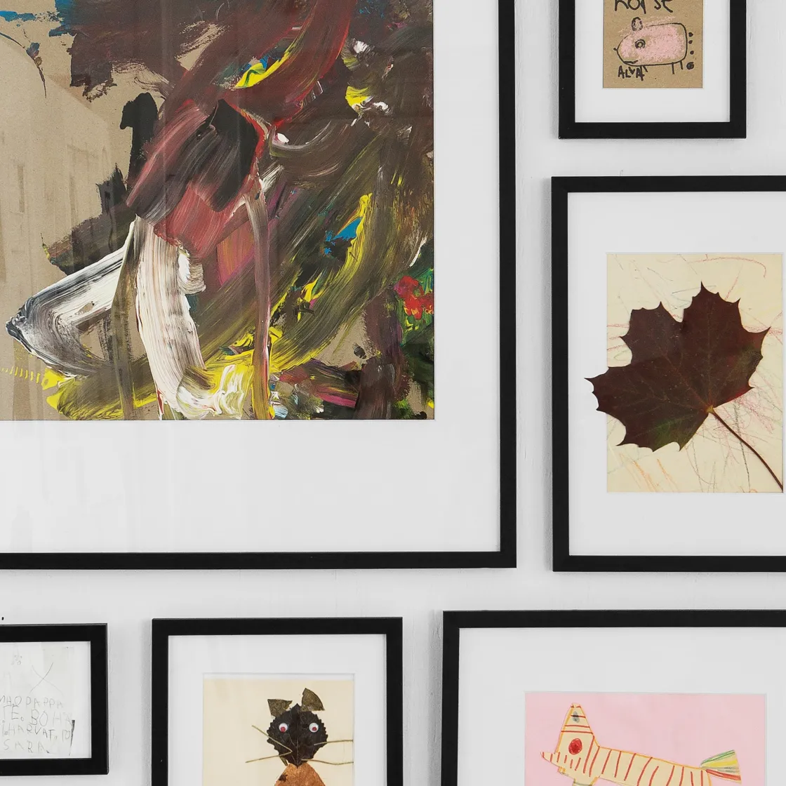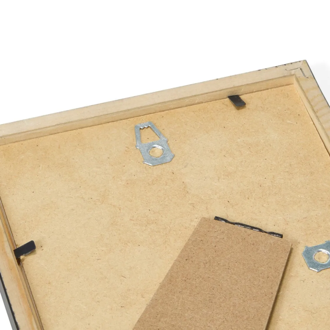 Ramen har stödben och en metallhängare fastsatt baktill, så du antingen kan sätta upp ramen på väggen eller låta den stå på en plan yta, till exempel ett bord. Skruv tillkommer inte. Olika väggmaterial kräver olika typer av fästbeslag. Använd beslag som passar väggarna i ditt hem, säljes separat. Passepartout säljs separat.