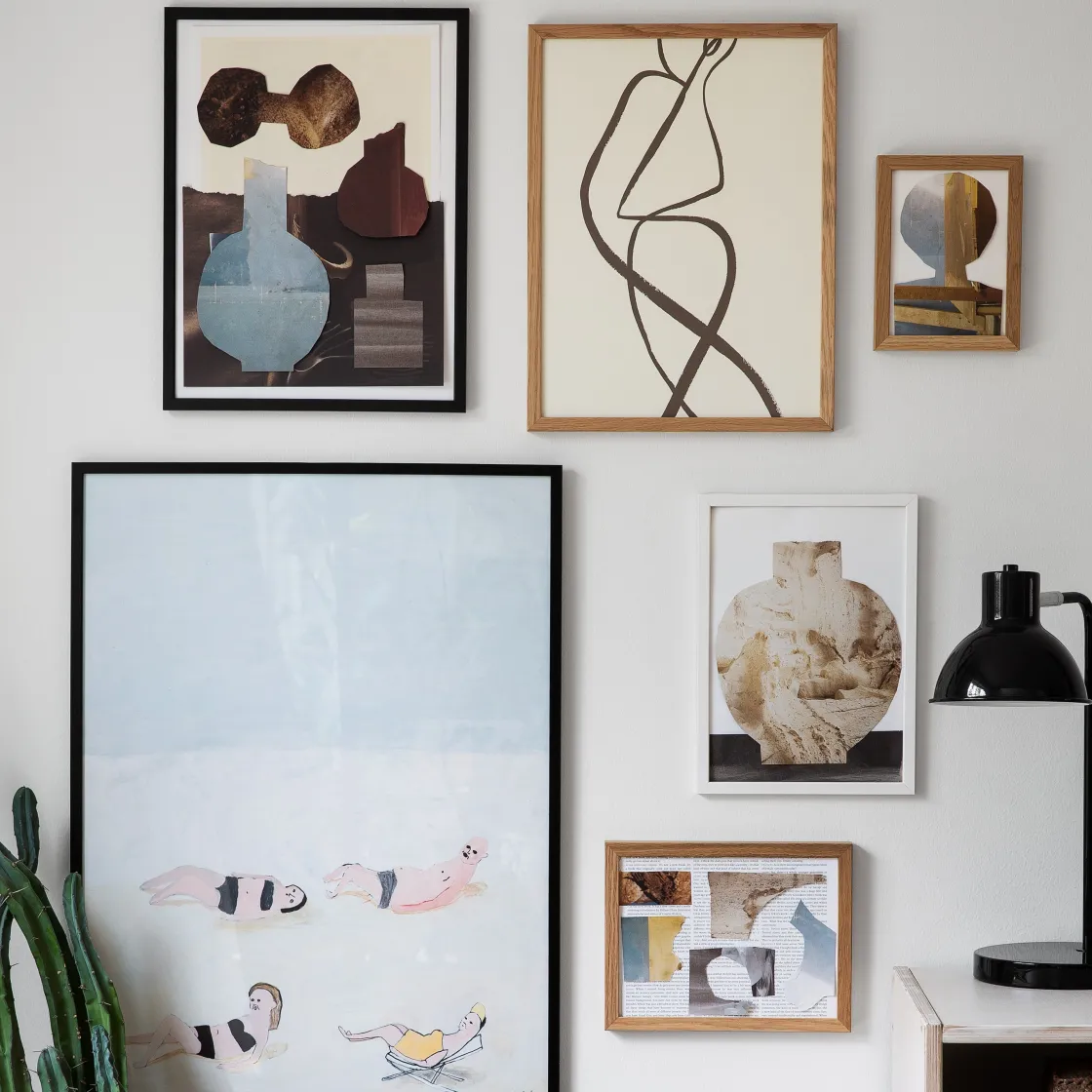 Ramen har en metallhängare fastsatt baktill, så du enkelt kan sätta upp ramen på väggen. Skruv tillkommer inte. Olika väggmaterial kräver olika typer av fästbeslag, använd beslag som passar väggarna i ditt hem, säljes separat. Passepartout säljs även den separat.