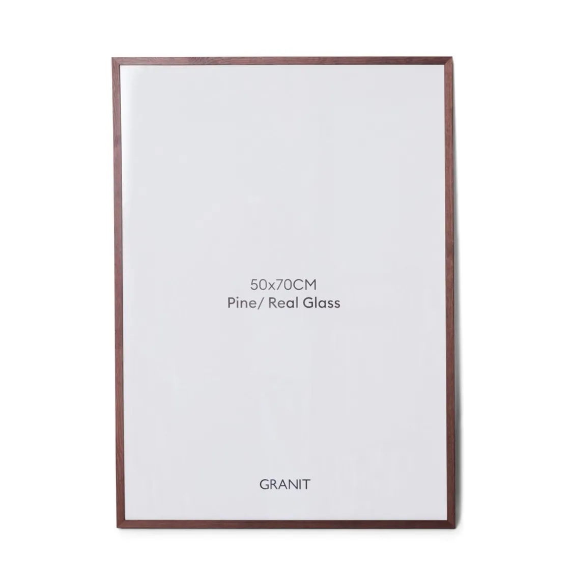 Träram i betsad furu med glasruta. Valnötstonen ger ramen en varm och hemtrevlig känsla. Ramen har ett bakstycke i Mdf och finns i flera färger och storlekar så att du enkelt kan matcha dina tavlor i olika storlekar för en fin och enhetlig effekt. Mått: 50 x 70 cm. Måttet 50 x 70 cm är den yta du ser inuti ramen.