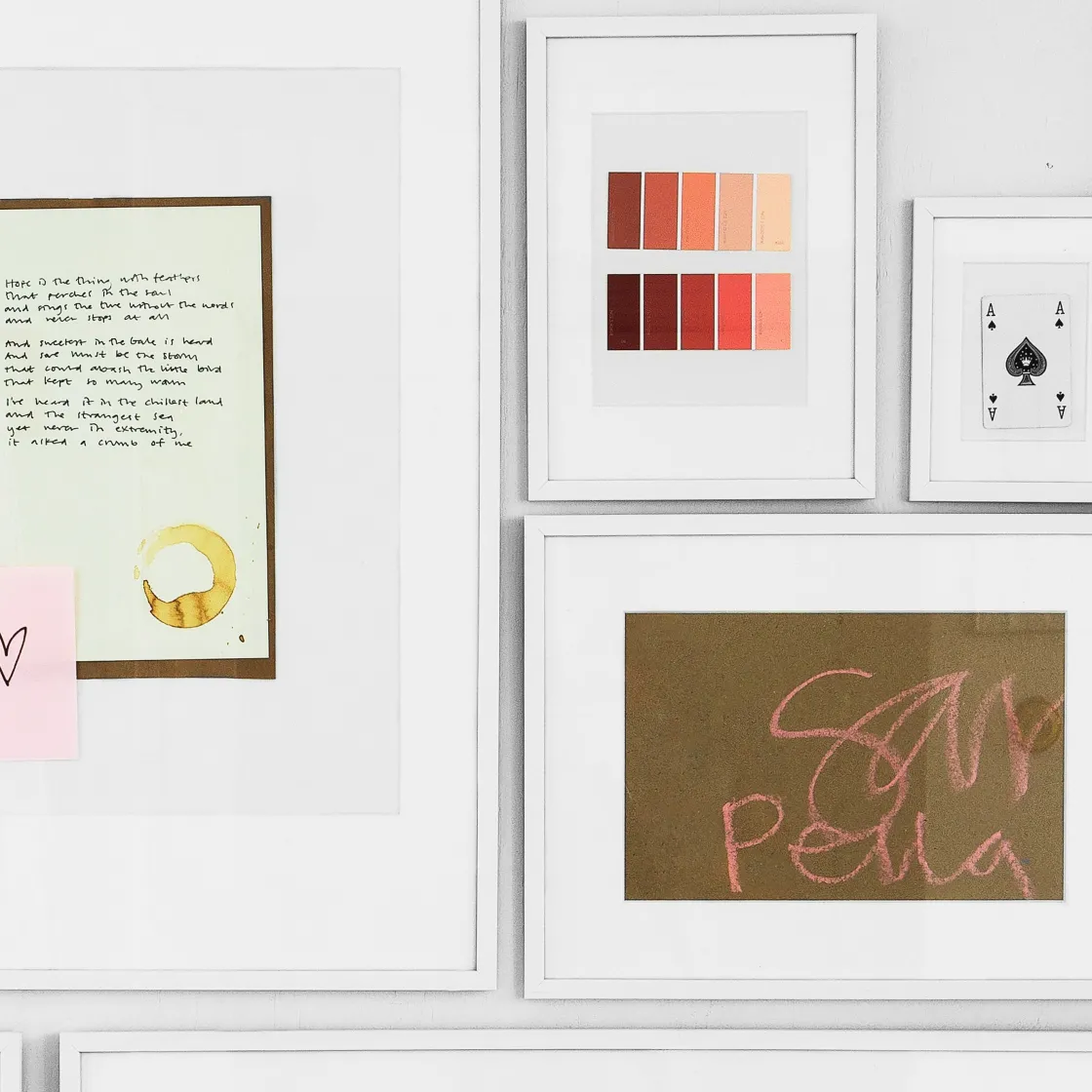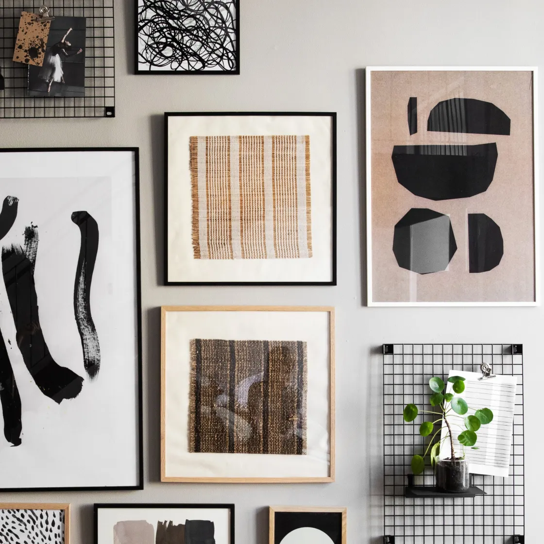 Ramen har en metallhängare fastsatt baktill, så du enkelt kan sätta upp ramen på väggen. Skruv tillkommer inte. Olika väggmaterial kräver olika typer av fästbeslag, använd beslag som passar väggarna i ditt hem, säljes separat. Passepartout säljs även den separat.