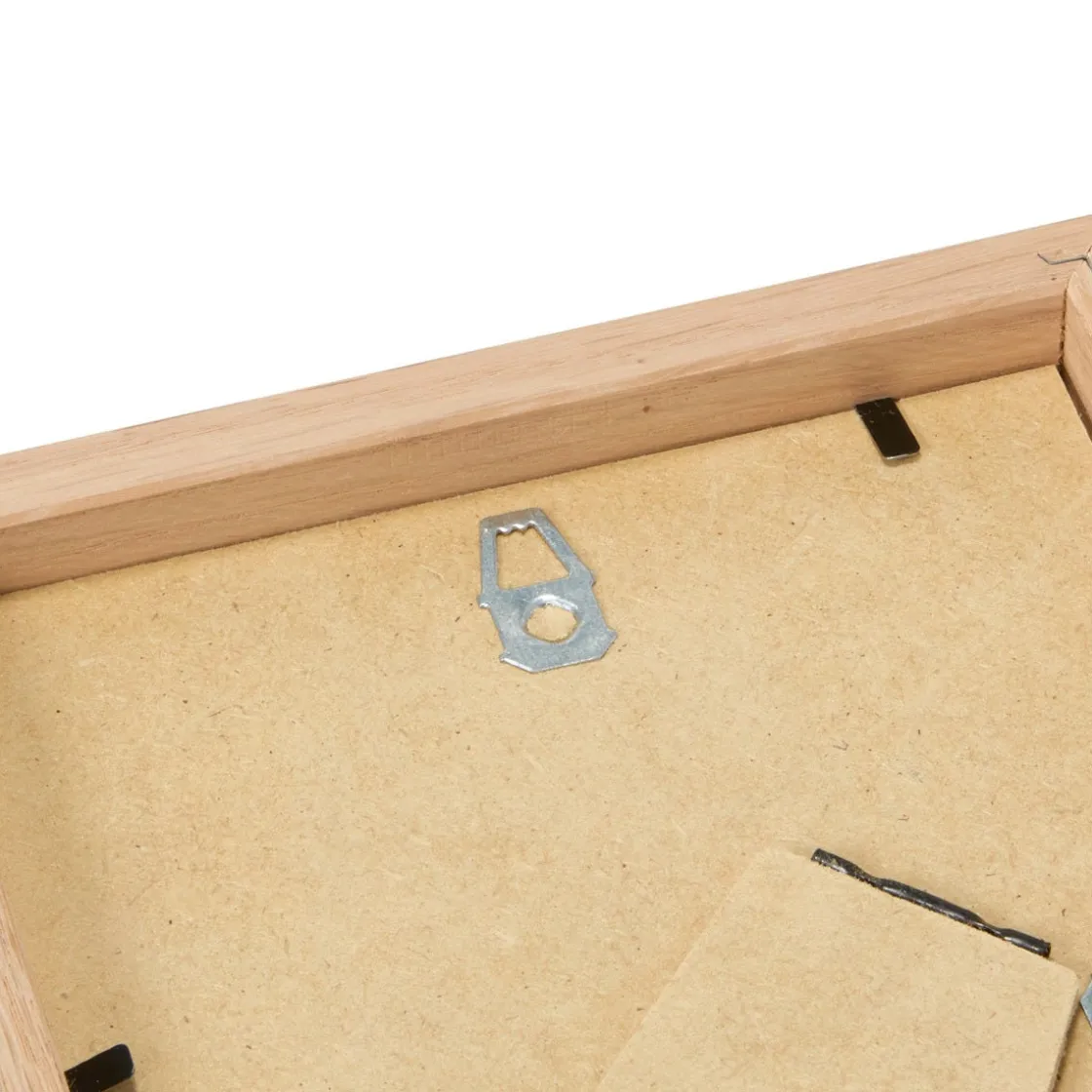 Ramen har stödben och en metallhängare fastsatt baktill, så du antingen kan sätta upp ramen på väggen eller låta den stå på en plan yta, till exempel ett bord. Skruv tillkommer inte. Olika väggmaterial kräver olika typer av fästbeslag. Använd beslag som passar väggarna i ditt hem, säljes separat. Passepartout säljs separat.