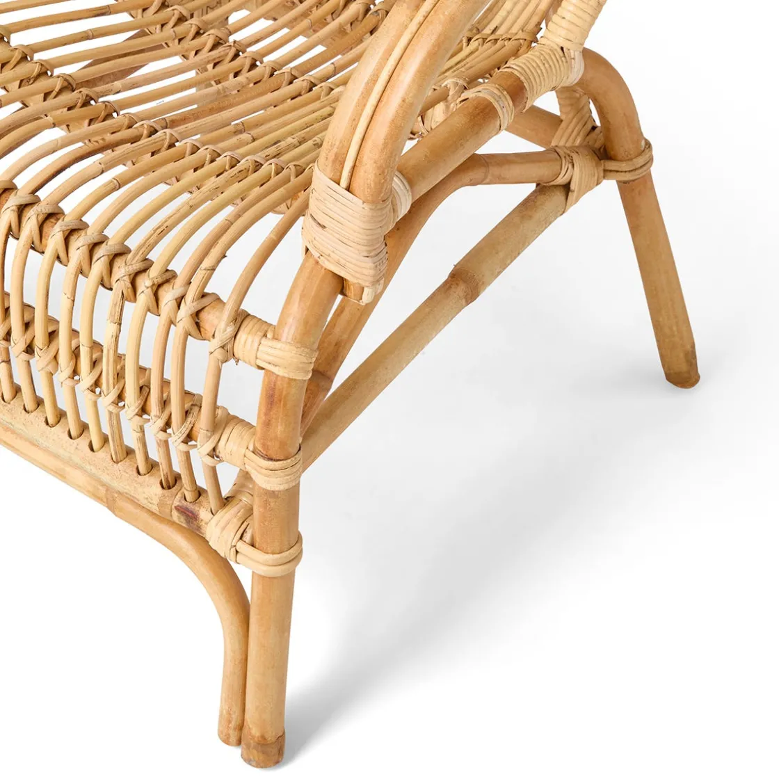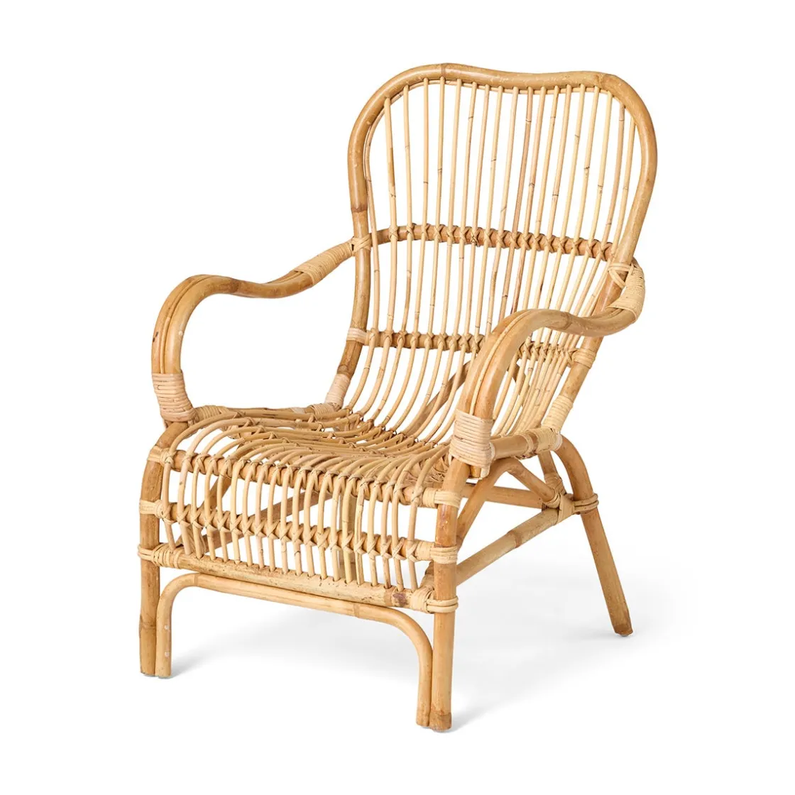 Rottingfåtölj som kombinerar naturlig charm med tidlös design. Formen på fåtöljen gör den perfekt för avkoppling – oavsett om det är i vardagsrummet, på altanen eller i uterummet.