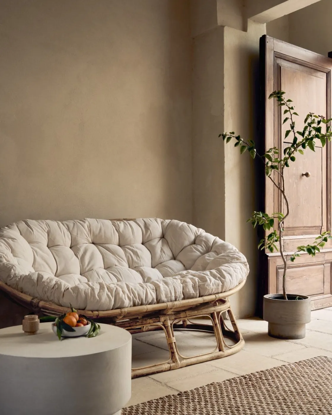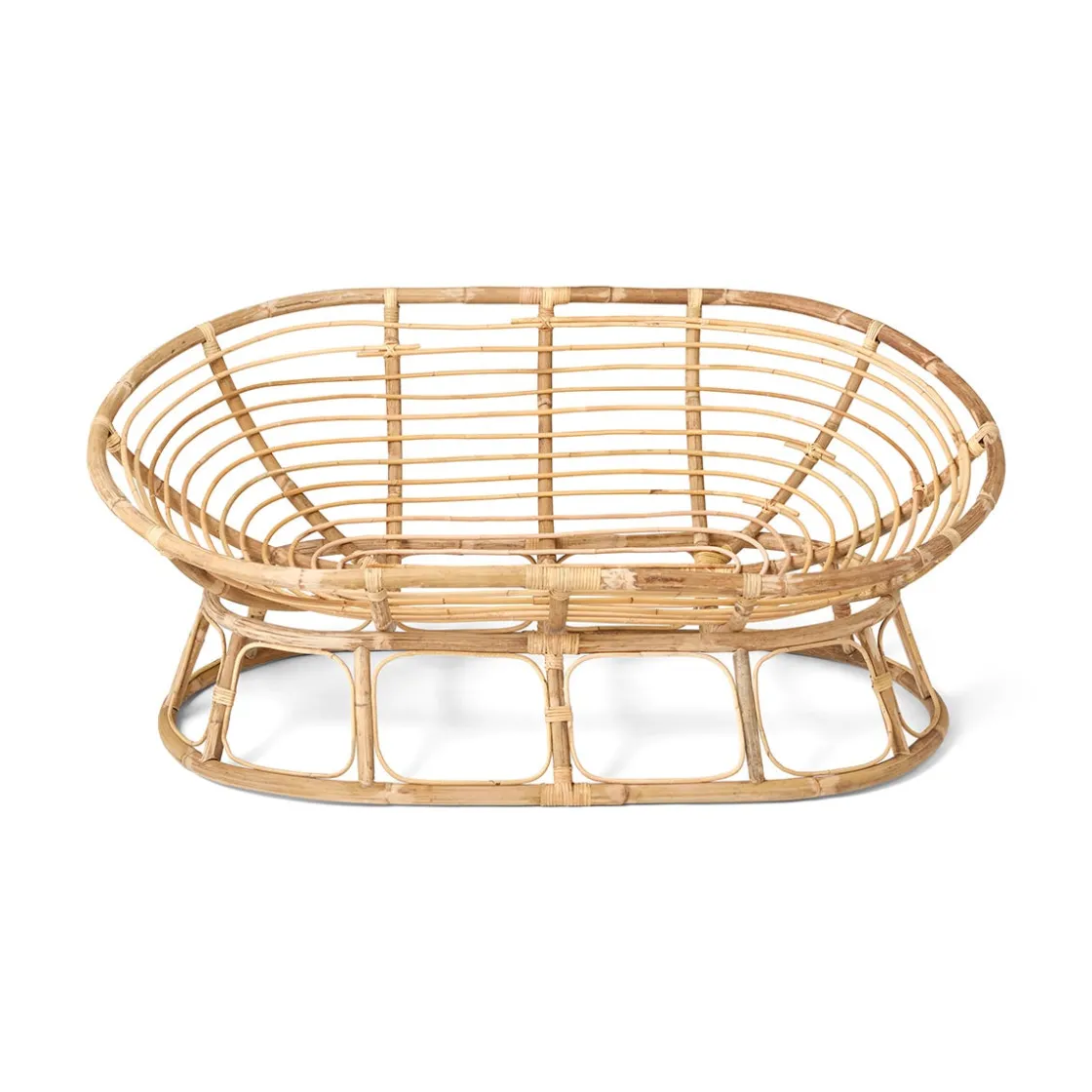 Vår ovala rottingsoffa med en härlig mjuk dyna som täcker hela sittdelen blir definitivt favoritplatsen att hänga på. Materialen skapar en avslappnad känsla och soffan passar fint in i många olika inredningsstilar. Matchar snyggt ihop med fåtölj rund rotting i samma serie.