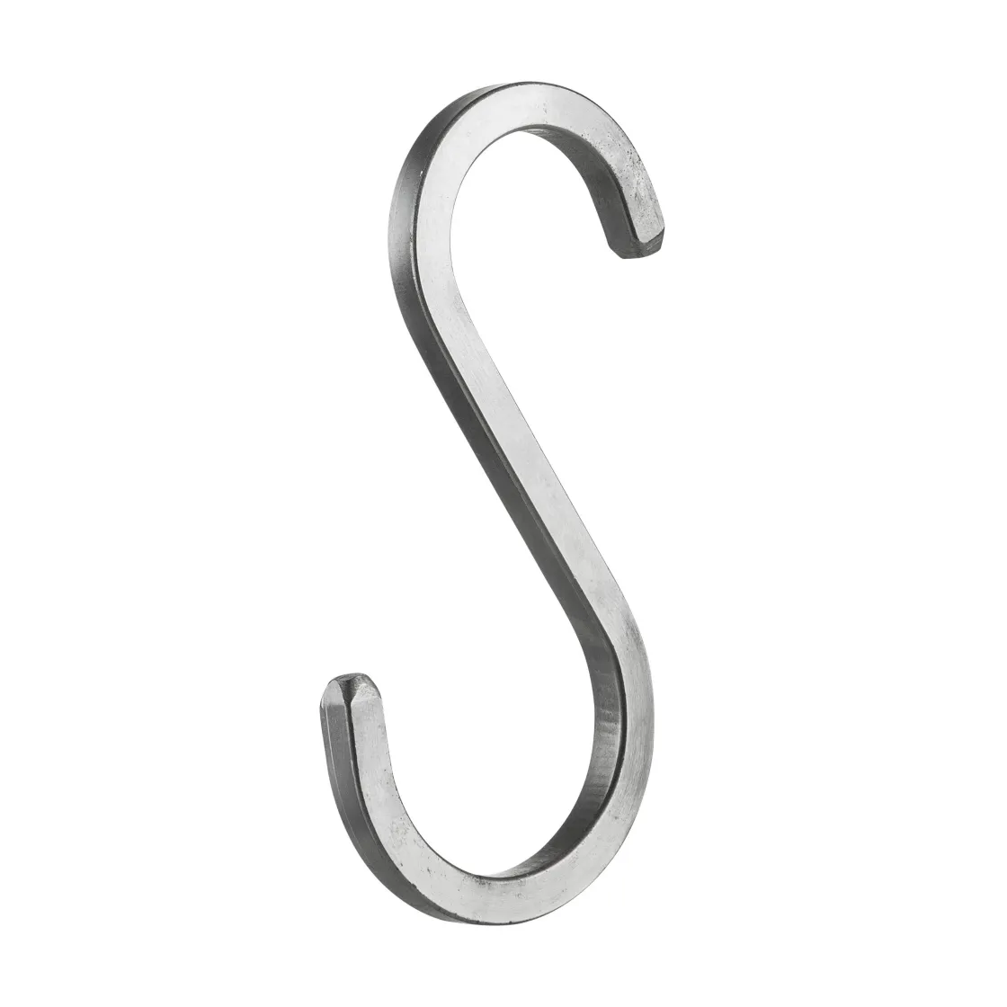 Rejäl och flexibel S-krok i järn med platta bankade sidor. Krokarna har olika innerdiameter på 2,5 cm respektive 3,5 cm. Praktiskt alternativ eller komplement till galgar, väggkrokar mm. Finns även i en större modell.