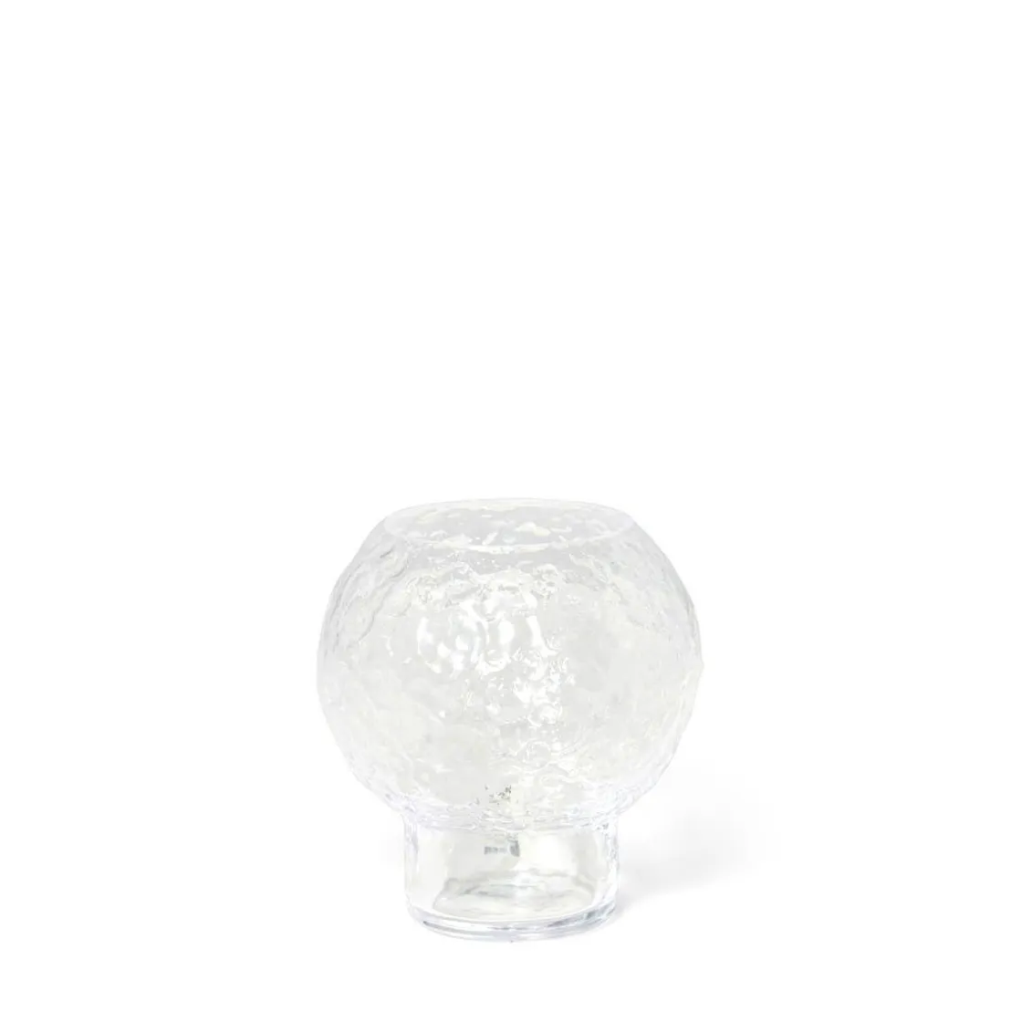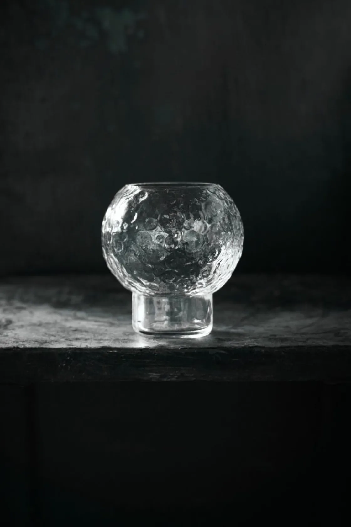 Munblåst ljuslykta i klarglas, framtagen i samarbete med Skrufs Glasbruk i Småland. Varje objekt är munblåst med precision och fingertoppskänsla av Skrufs skickliga glasblåsare. Ljuslyktans struktur ger glaset liv och karaktär och skapar ett unikt ljusspel som framhäver hantverket bakom varje exemplar. Finns även i grönt och orange.