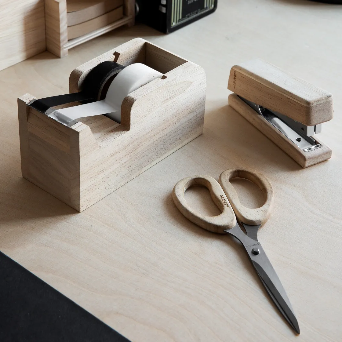Tejphållare i obehandlat gummiträ med plats för två vanliga tejprullar eller tre av Granits washitejprullar.