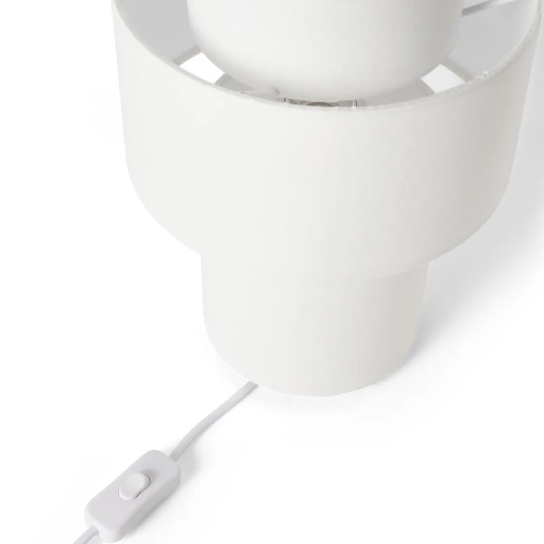 Denna bordslampa med en vit textilskärm sprider ett mjukt, behagligt ljus. Lampan har en 1,6m lång sladd och E27sockel. Perfekt för att skapa en mysig atmosfär i hemmet. Oavsett om den placeras i ett modernt vardagsrum eller en klassisk sovrumsmiljö, bidrar lampans harmoniska uttryck till en inbjudande känsla. Rekommenderad ljuskälla på 2500–3000K.