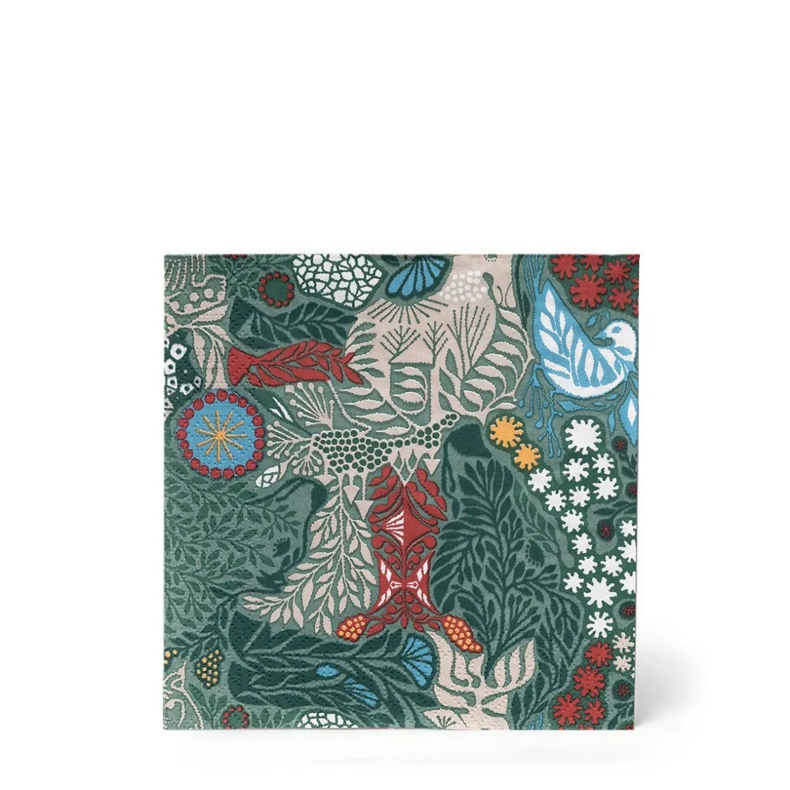 Pappersservetter med ett detaljrikt mönster i grönt och vitt ritat av den japanske illustratören Toshiyuki Fukuda, med inspiration från de nordiska skogarna. Servetterna är tillverkade av FSC-certifierat papper, tryckta med vattenbaserad färg och Svanenmärkta.