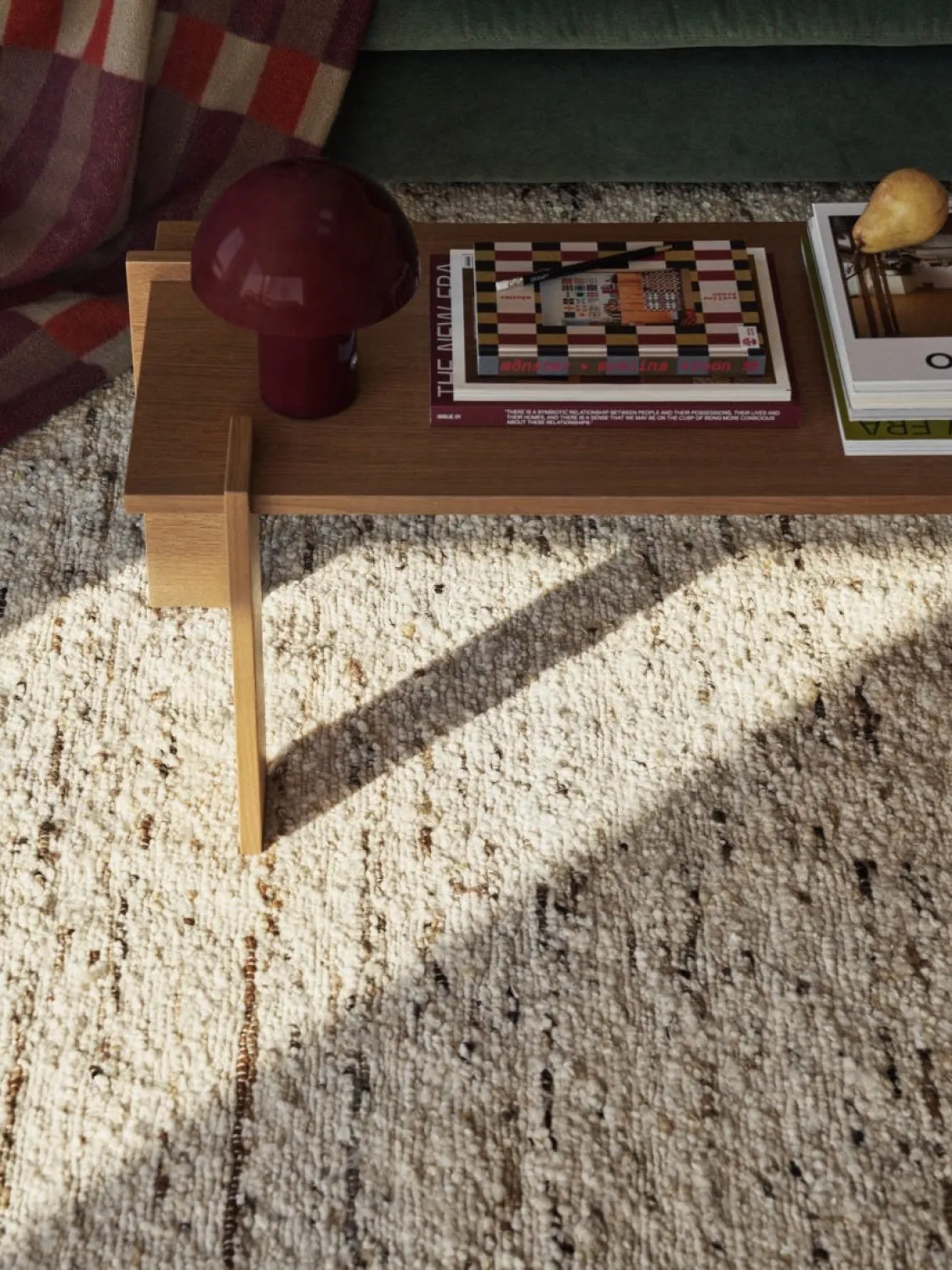 Ull är ett slitstarkt och värmeisolerande material som känns mjukt under fötterna. Dess smutsavvisande och självrengörande egenskaper gör mattan till ett praktiskt val i vardagsrummet, sovrummet eller hallen. Handvävd i traditionell teknik vilket gör att mindre variationer i storlek och färg kan förekomma.