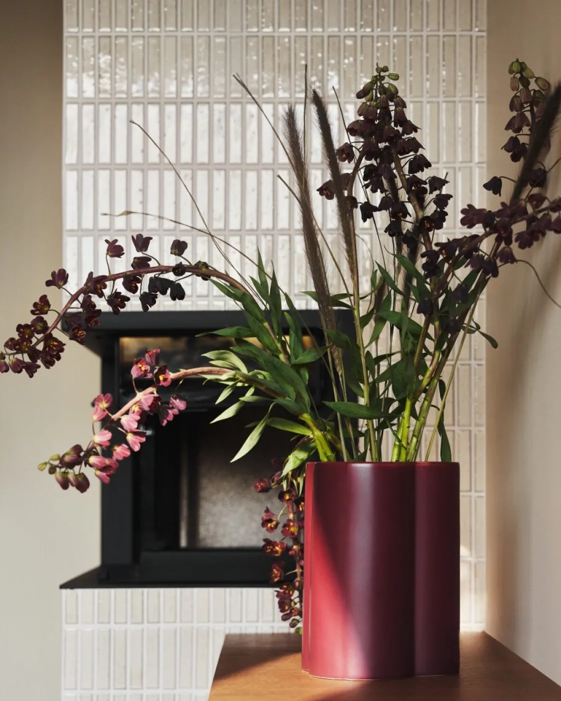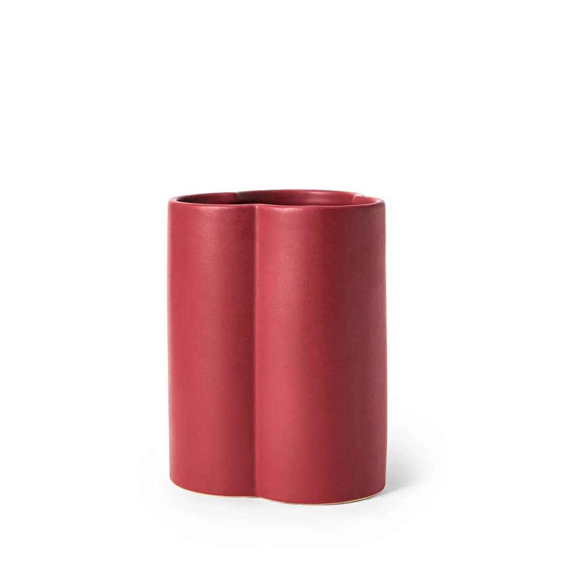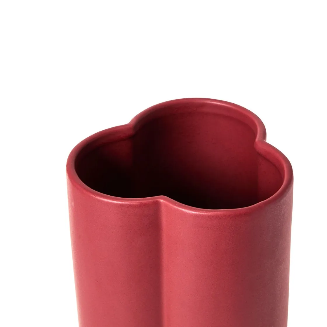 Handgjord vas i stengods med matt, vinröd glasyr. Den varma röda färgen gör vasen till ett stämningsfullt inslag i hemmet, lika fin till jul som året runt. Vasen är perfekt för snittblommor och buketter men den är lika fin som en dekorativ inredningsdetalj på egen hand. Stengodset och dess glasyr gör vasen både tålig och lätt att rengöra. Då vasen är handgjord kan små variationer förekomma vilket ger varje exemplar en unik karaktär.