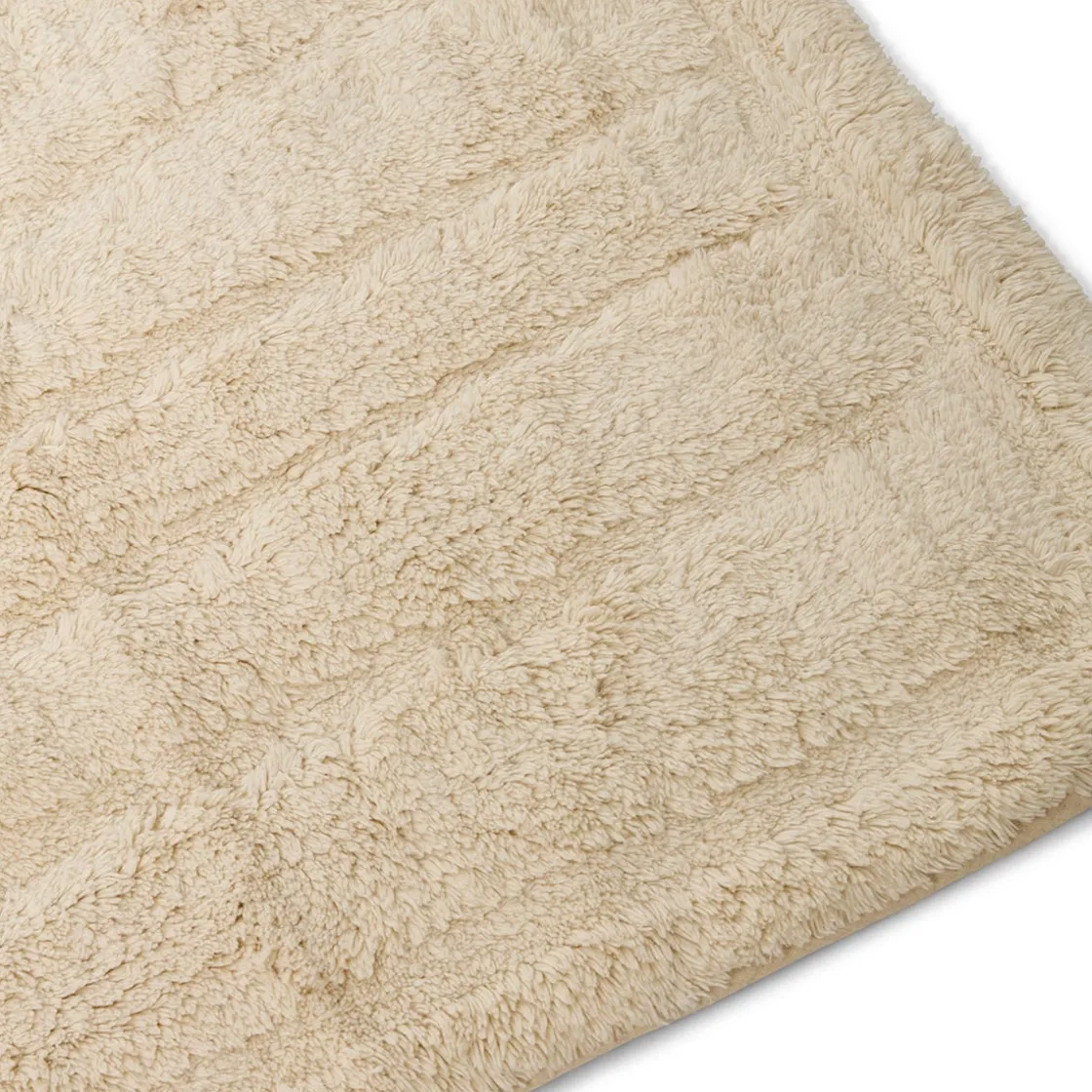 Bomullsmatta Struktur är tillverkad av 99% återvunnen bomull och 1% andra fibrer. Den tuftade designen ger en härligt mjuk och fluffig textur, vilket skapar en mysig atmosfär i vardagsrummet. Den är GRS och Oeko-Tex-certifieringad och den naturliga färgen smälter fint in i olika interiörer och förstärker en harmonisk känsla i rummet.