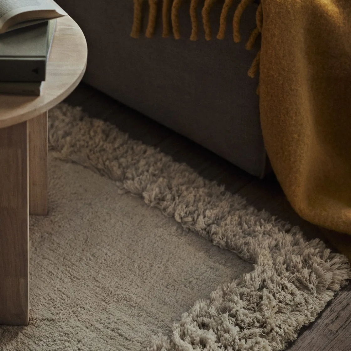 Snygg och mjuk matta i 100% återvunnen bomull. Mattan har en dekorativ kant med något längre lugg för att skapa en snygg design på en annars enkel matta. Den passar in i många hem och till flera olika inredningsstilar. Mattan är handtuftad vilket förlänger mattans livslängd. Endast spot clean.