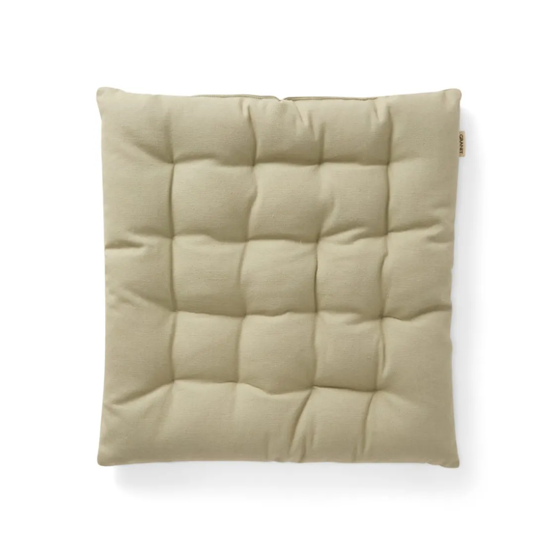 Ljusgrön, kvadratisk stolsdyna i bomull med stoppning av polyester. En dyna som passar lika bra ute som inne men är perfekt som trädgårdsdyna tack vare dess vattenavvisande impregnering, BIONIC-FINISH® ECO. En innovativ och naturlig metod som är mer skonsam mot miljön än traditionella impregneringar. Behandlingen gör ytan lätt vattenavvisande och enkel att torka av samtidigt som textilens naturliga känsla bevaras. Dynan är vattenavvisande men inte vattentät och bör därför tas in eller förvaras under tak vid risk för regn.