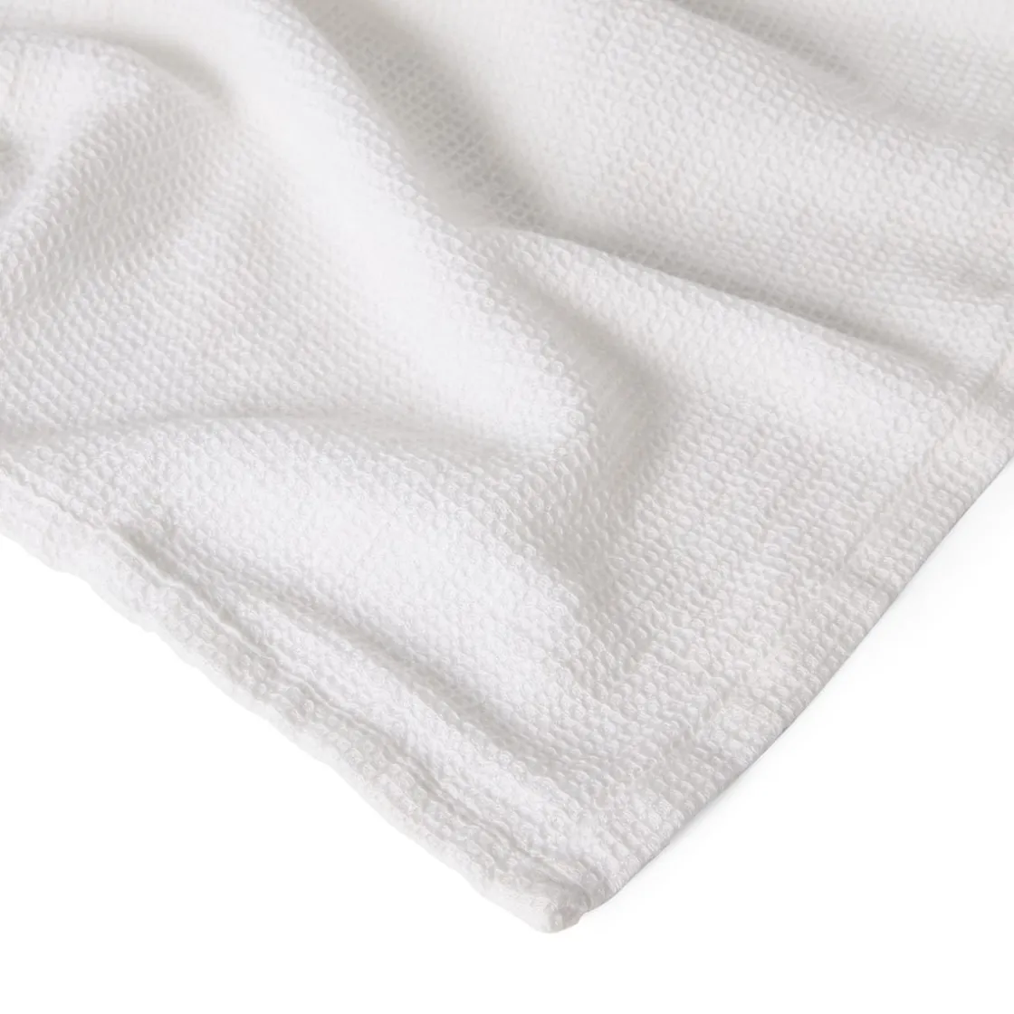En våfflad handduk i en blandning av bomull och bambuviskos, som är mjuk och härlig. Den vita färgen ger ett friskt och tidlöst intryck medan det våfflade mönstret adderar en fin textur som höjer den estetiska upplevelsen. Oeko-Tex certifierad och tvättas i 30 grader. Undvik torktumling och stryk vid behov på låg temperatur.