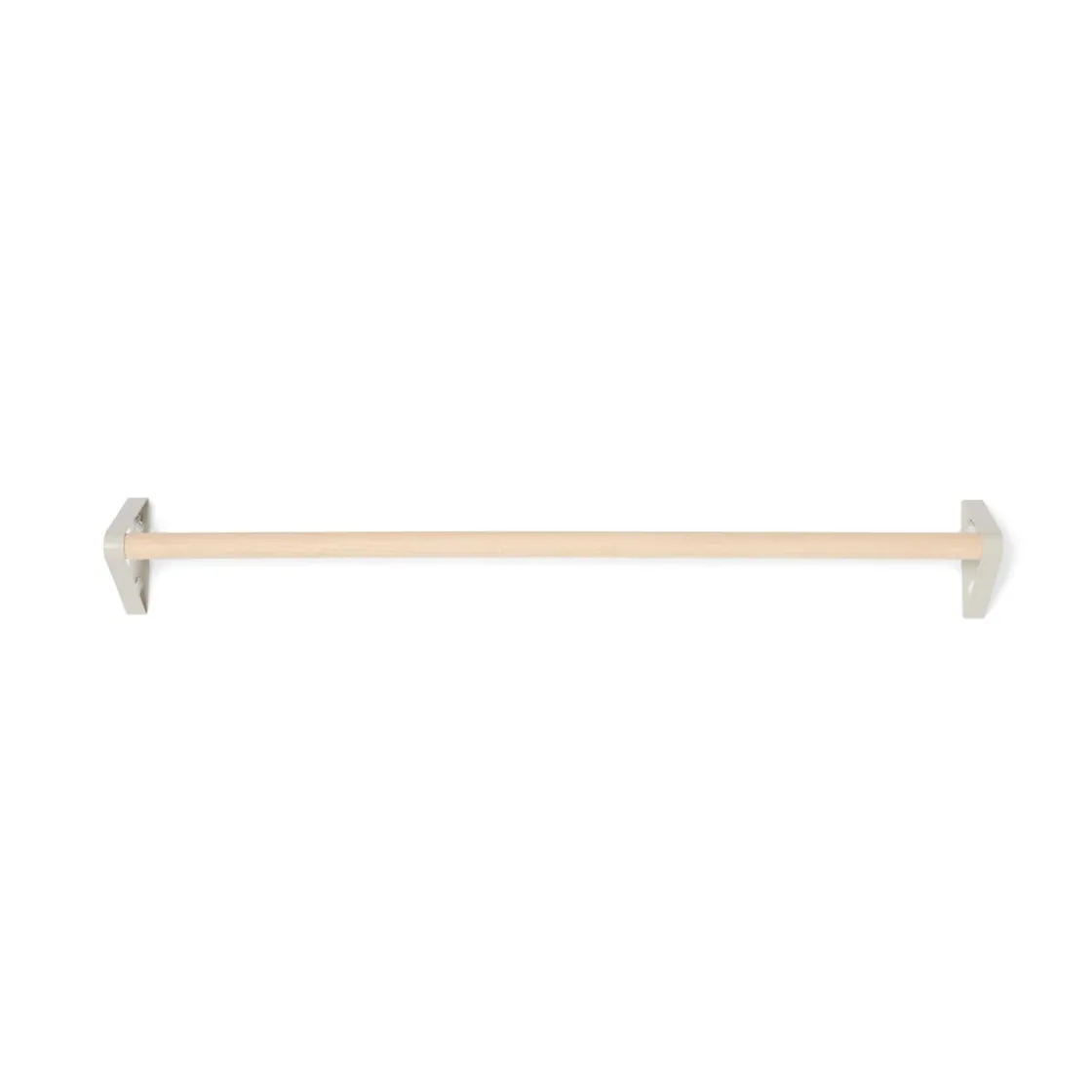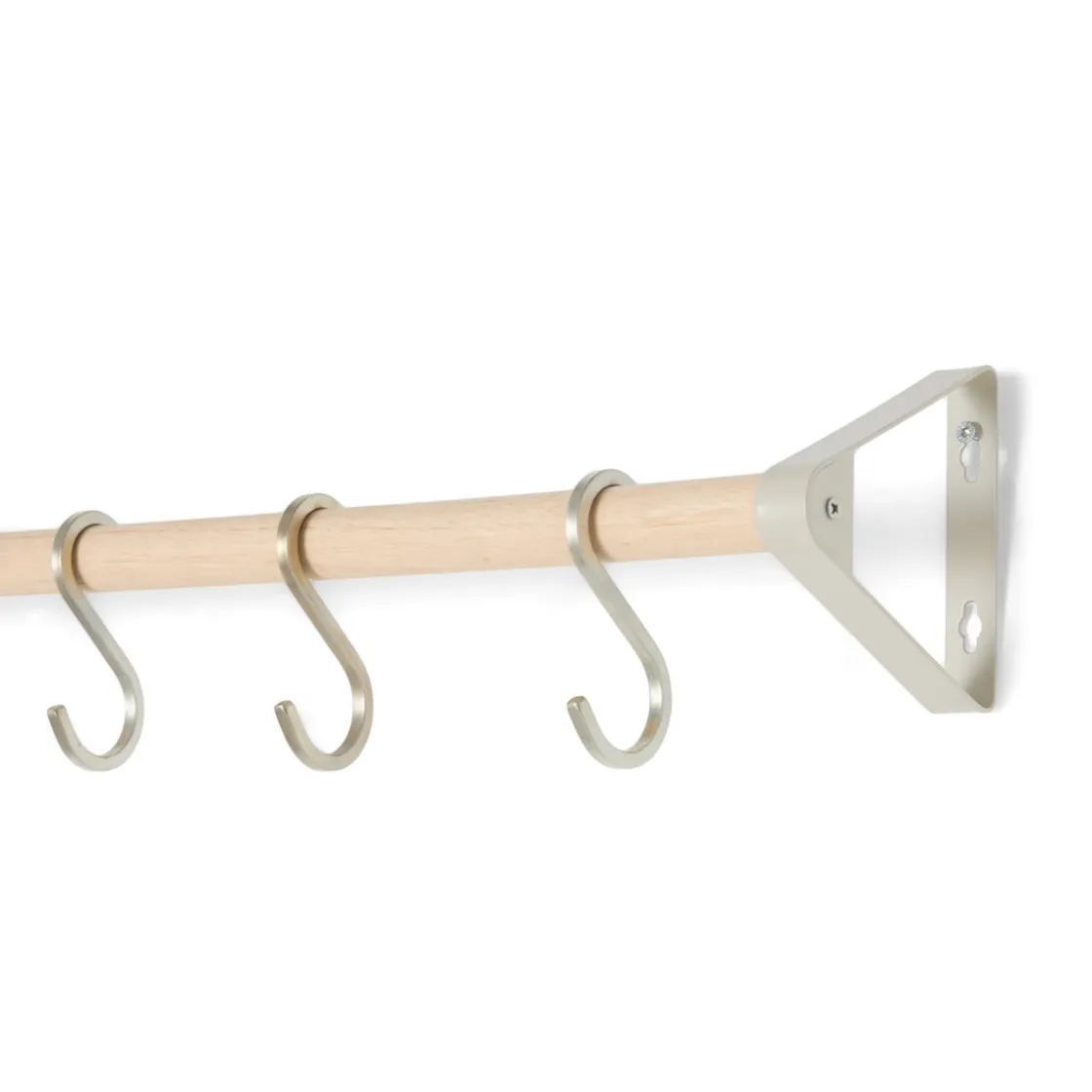 Få ordning på köksredskap, kläder och accessoarer på ett snyggt sätt med en stilren väggmonterad hängare! Tillverkad av FSC-certifierat gummiträ och beige pulverlackerad metall, ger denna 86 cm långa hängare en naturlig och modern touch till ditt hem. Perfekt för hallen, köket eller vilket rum som helst, den är designad för att användas med våra S-krokar eller liknande för maximal funktionalitet.