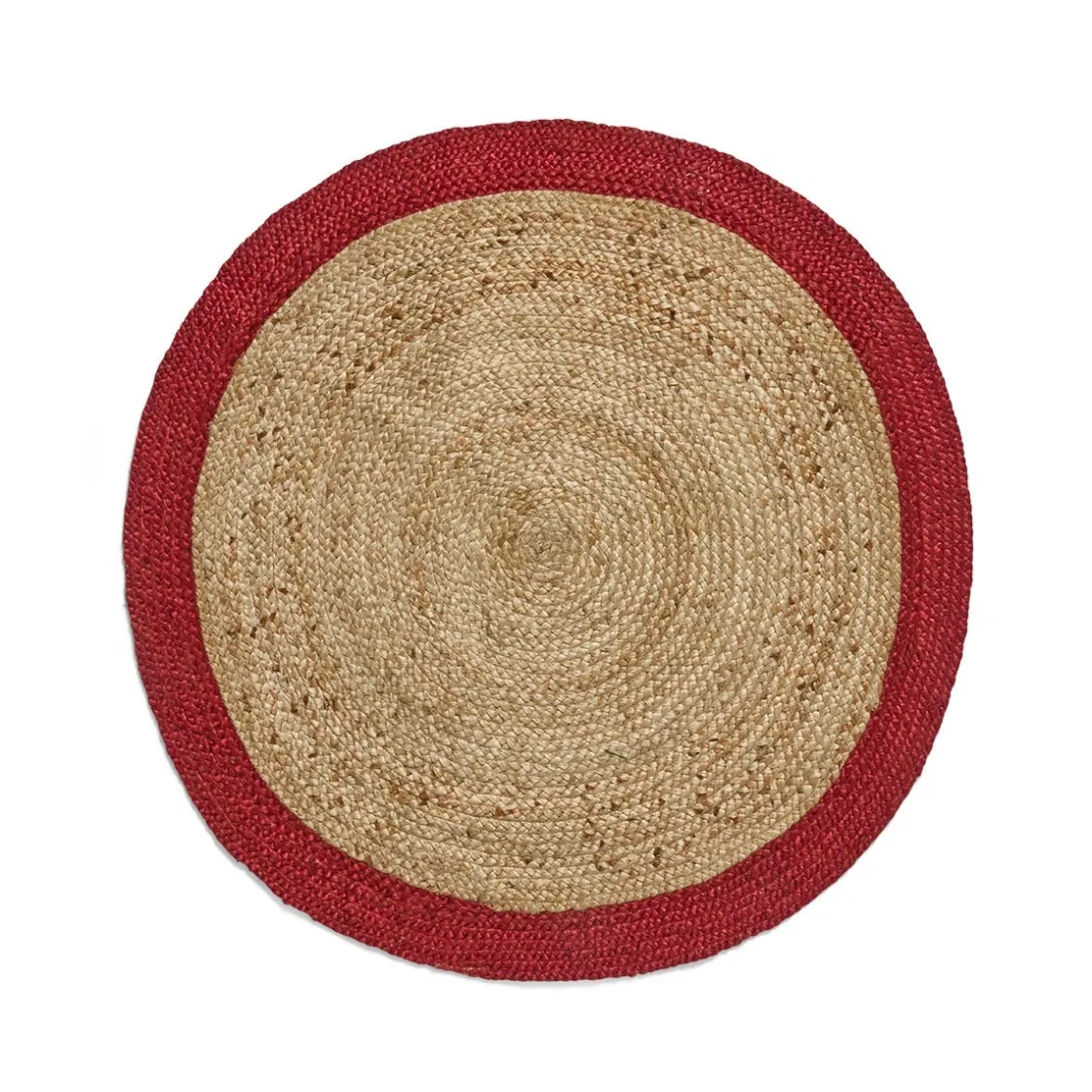 Julgransmatta i 100% jute med en dekorativ röd kant. Jutemattor har en charmig, rustik look som ger en varm och naturlig känsla till rummet. Dessutom är materialet tåligt vilket gör det till ett utmärkt material för en julgransmatta som ska tåla att användas år efter år. Mattan skyddar golvet från repor och barr samtidigt som den bidrar med en mysig julkänsla runt julgranen.