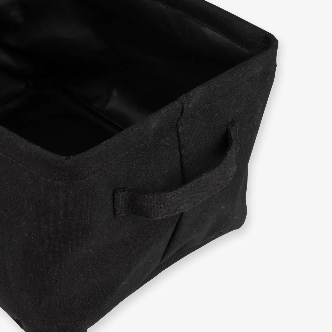 Svart hopvikbar korg med lätt vattenavstötande insida. Perfekt för sortering av småsaker i alla hemmets rum, leksaker i barnrummet eller att ha i garderoben för bättre sortering av t ex. strumpor. Handtag på varje kortsida.