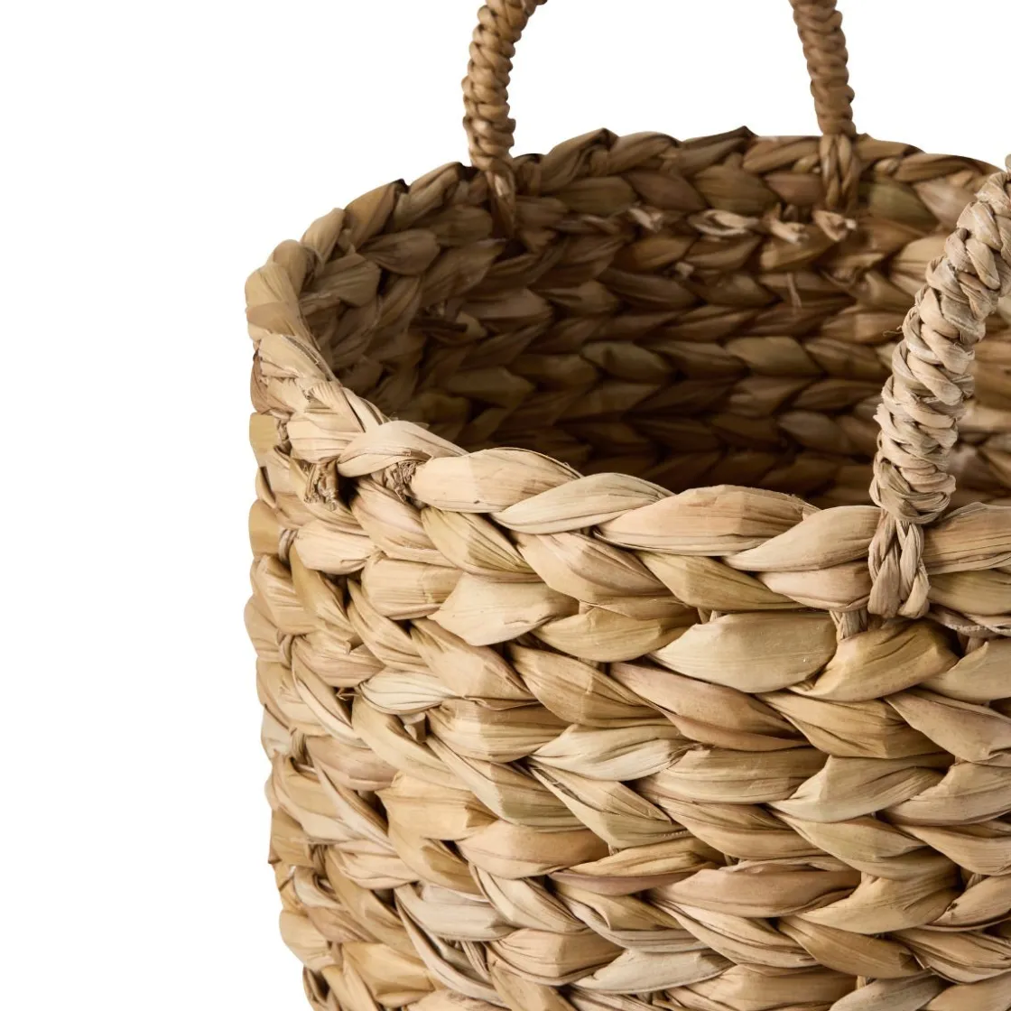 Denna runda korg, erbjuder en snygg och funktionell förvaringslösning. Tillverkad av 100% naturligt sjögräs, har den ett unikt och inspirerande designuttryck tack vare sin fina vävning. Ett enkelt sätt att förvara allt från leksaker till garn, eller fula prylar du inte vill ska synas.