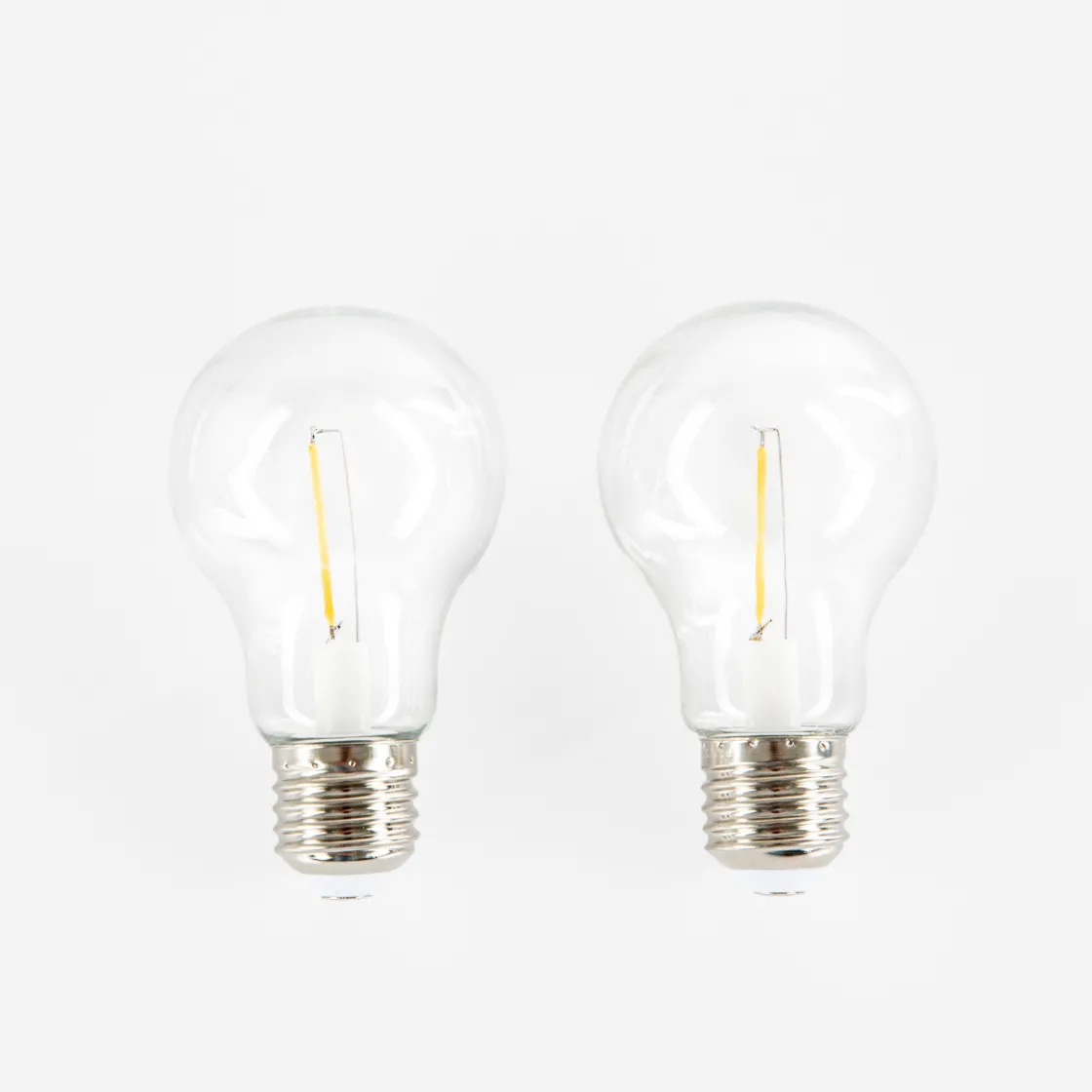 Reservlampor till ljusslinga 376317 (och 376315 som dock har glaslampor i originalutförande). Reservlamporna säljs i pack om två och ljusgloben är tillverkad av plast. Ljuskällorna sprider ett varmvitt sken.
