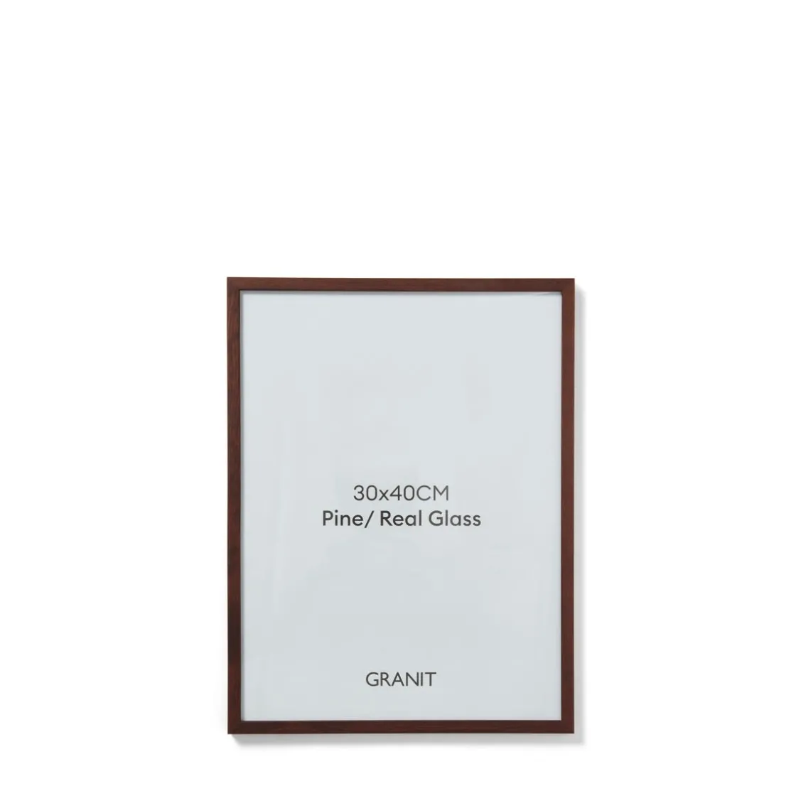 Träram i betsad furu med glasruta. Valnötstonen ger ramen en varm och hemtrevlig känsla. Ramen har ett bakstycke i Mdf och finns i flera färger och storlekar så att du enkelt kan matcha dina tavlor i olika storlekar för en fin och enhetlig effekt. Mått: 30 x 40 cm. Måttet 30 x 40 cm är den yta du ser inuti ramen.