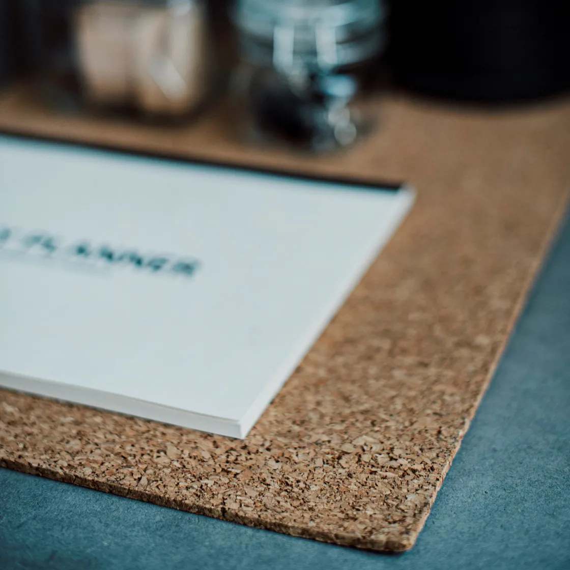 Ett skrivbordsunderlägg i 100% ofärgad kork. Tips: Fäst flera i rad eller på höjden på en vägg och bygg din egen kork anslagstavla för barnens teckningar eller andra viktiga papper. Mått: B70 cm H 50 cm D 0,4 cm.